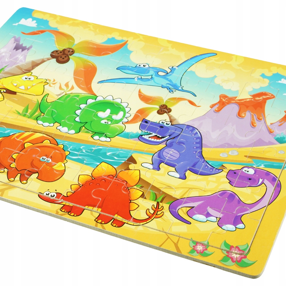 DREWNIANA KOLOROWA UKŁADANKA PUZZLE DINOZAURY