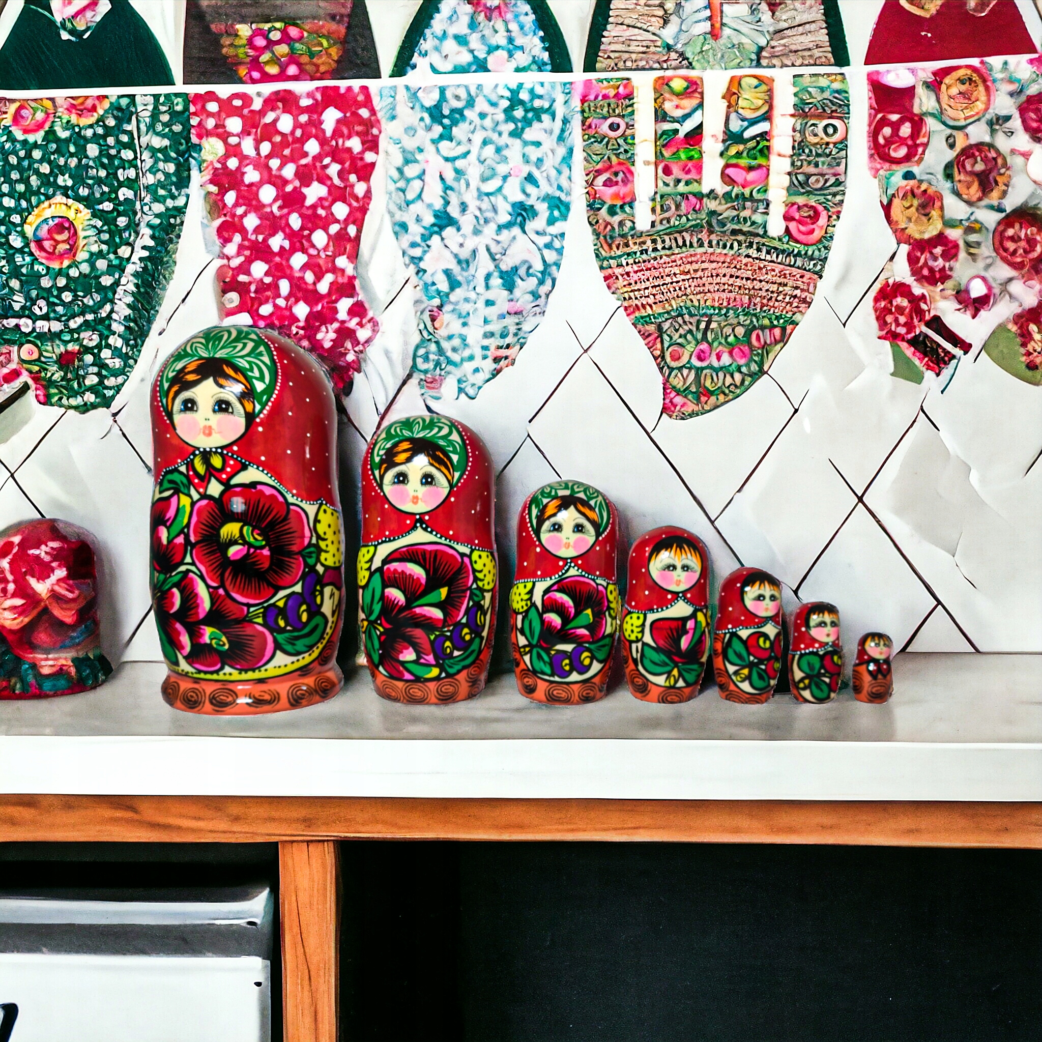 Drewniana Lalka MATRIOSZKA BABUSZKA 7w1 20 cm recznie malowana chusta