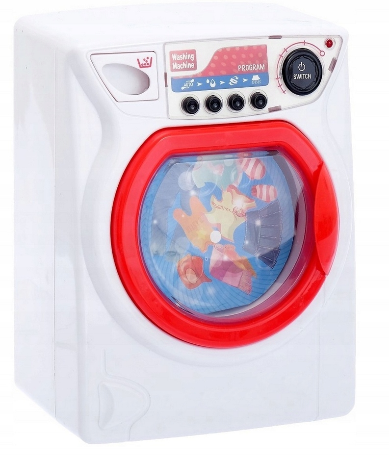 Пральна машина зі світлом і звуком призначена для дітей від 3 років. Натисніть кнопку вгорі, і після натискання кнопки програми пристрій засвітиться і видасть справжній звук.