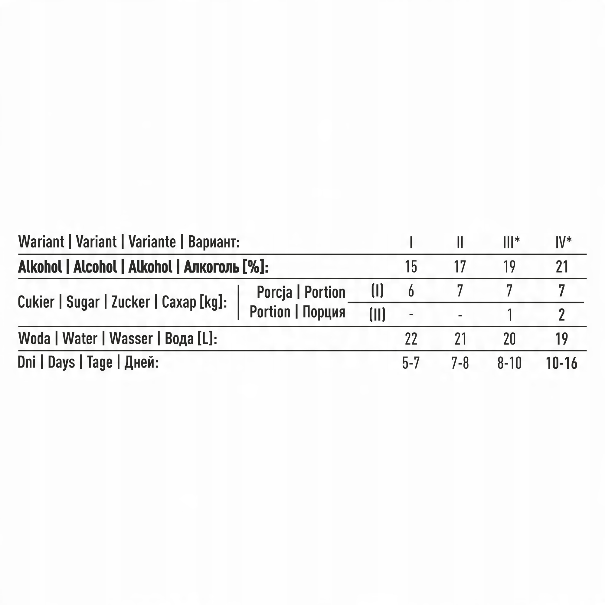 - Бродіння до 21% спирту - нова суміш дріжджів і середовища забезпечує високий рівень бродіння до 21%.