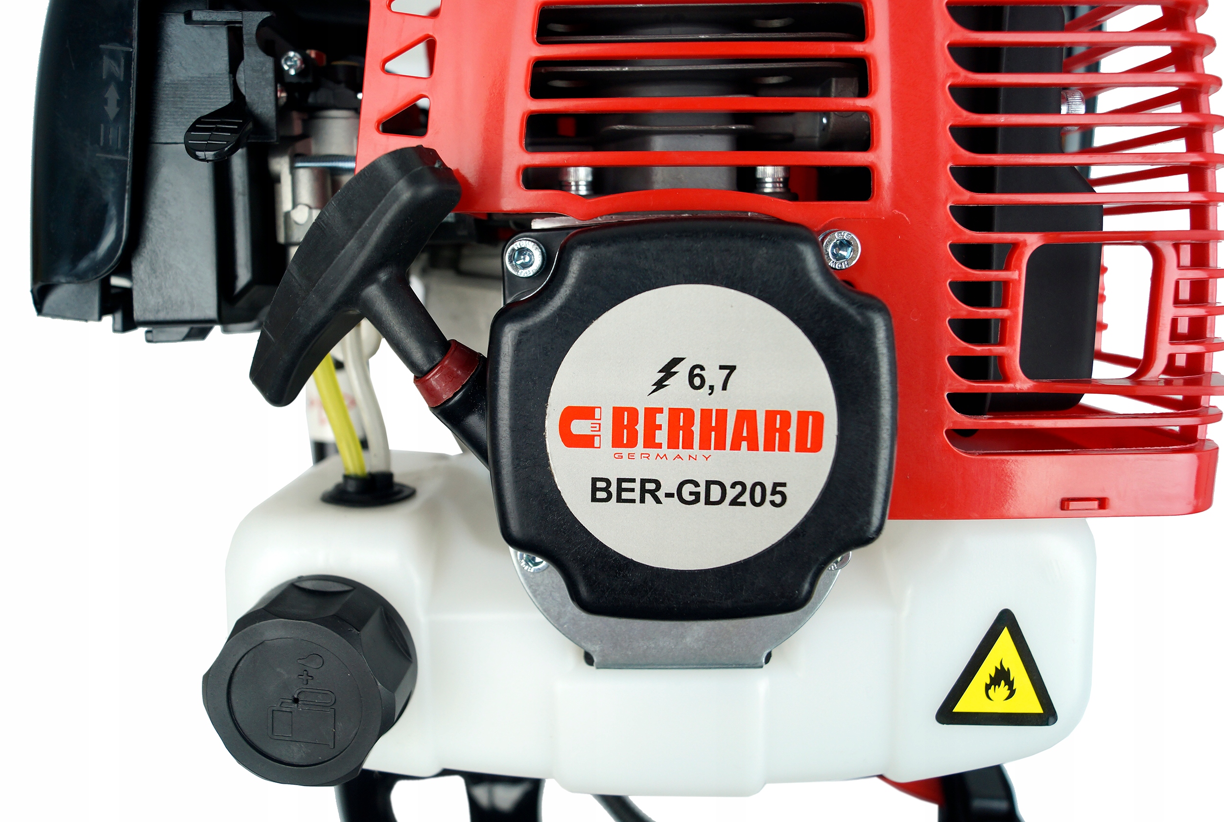 Пристрій оснащений дуже потужним 6,7 к. с. двигуном, призначеним для роботи на огорожах та роботах будівництво. Дуже міцна передача з повними підшипниками. Поршень з двома кільцями, збалансований шатун. Міцна конструкція. Відцентрова муфта, що забезпечує безпечну роботу.