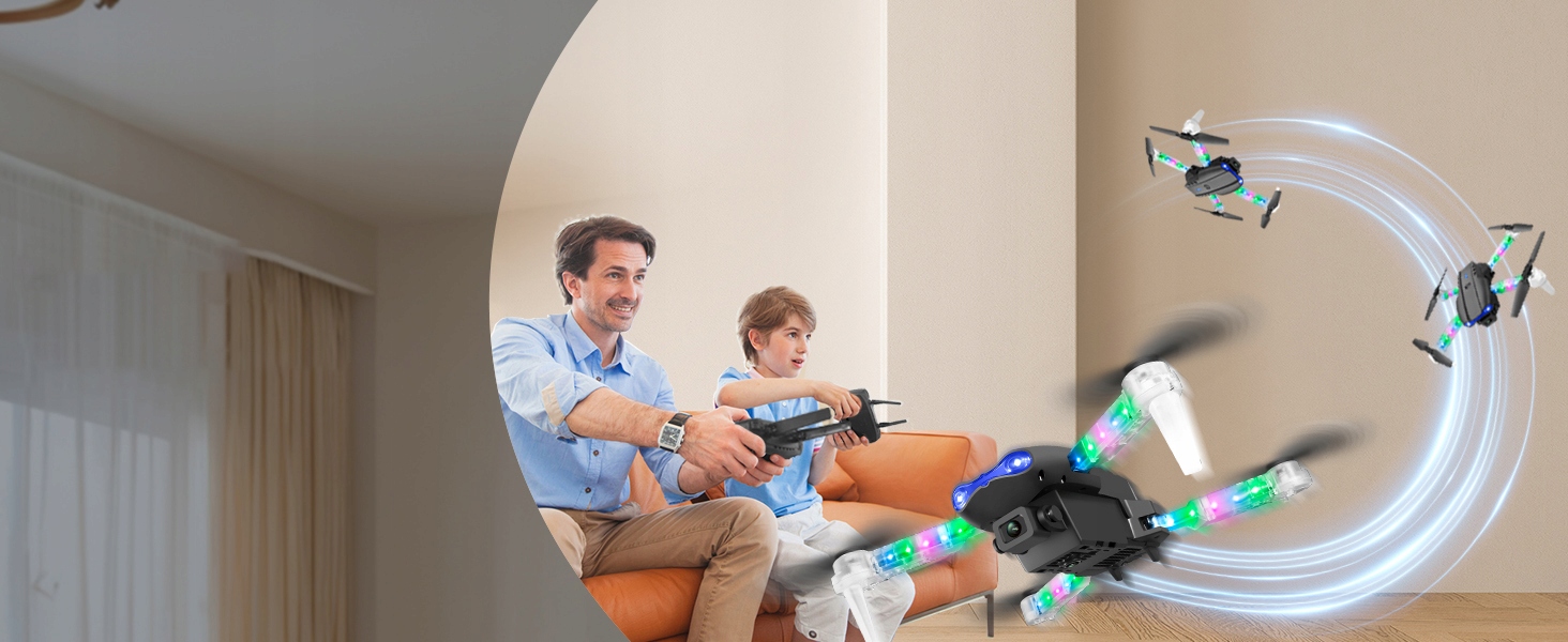 - Функції: прозора рука з кольоровим світлодіодним освітленням, перемикання подвійної камери, фіксована висота, зліт однією кнопкою, посадка однією кнопкою, підйом і спуск, політ вперед і назад, політ ліворуч і праворуч, керування, безголовий режим, фотографії та відео жестами, відстеження польоту, вимірювання сили тяжіння, автоматична зйомка фотографій тощо.