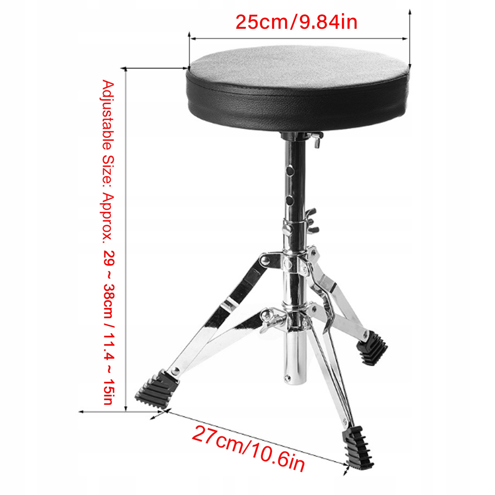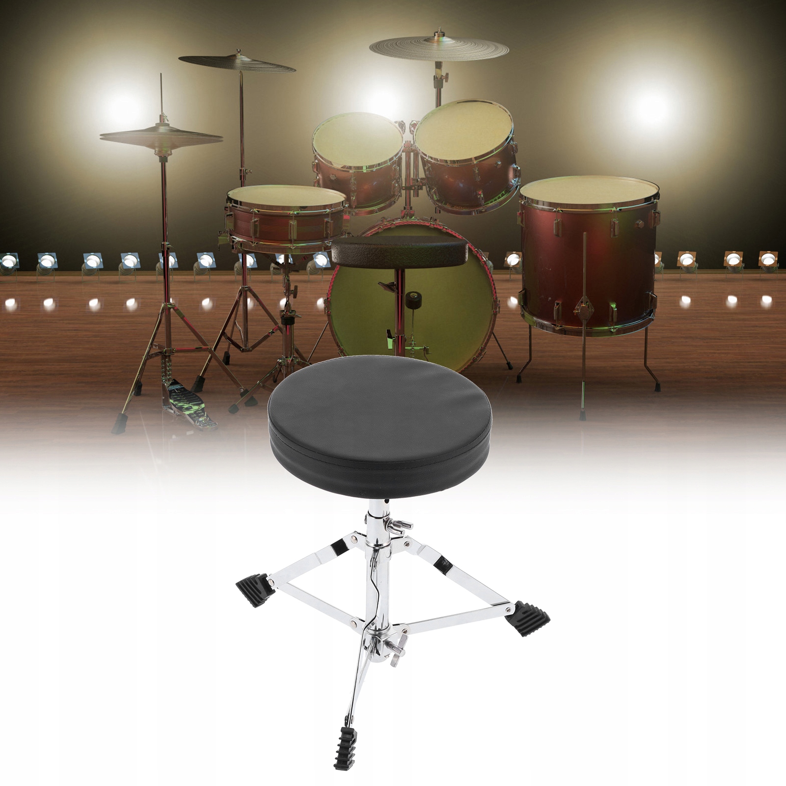 1. Цей триногий табурет має три нековзкі гумові підкладки, які запобігають переміщенню барабанного трона під час гри