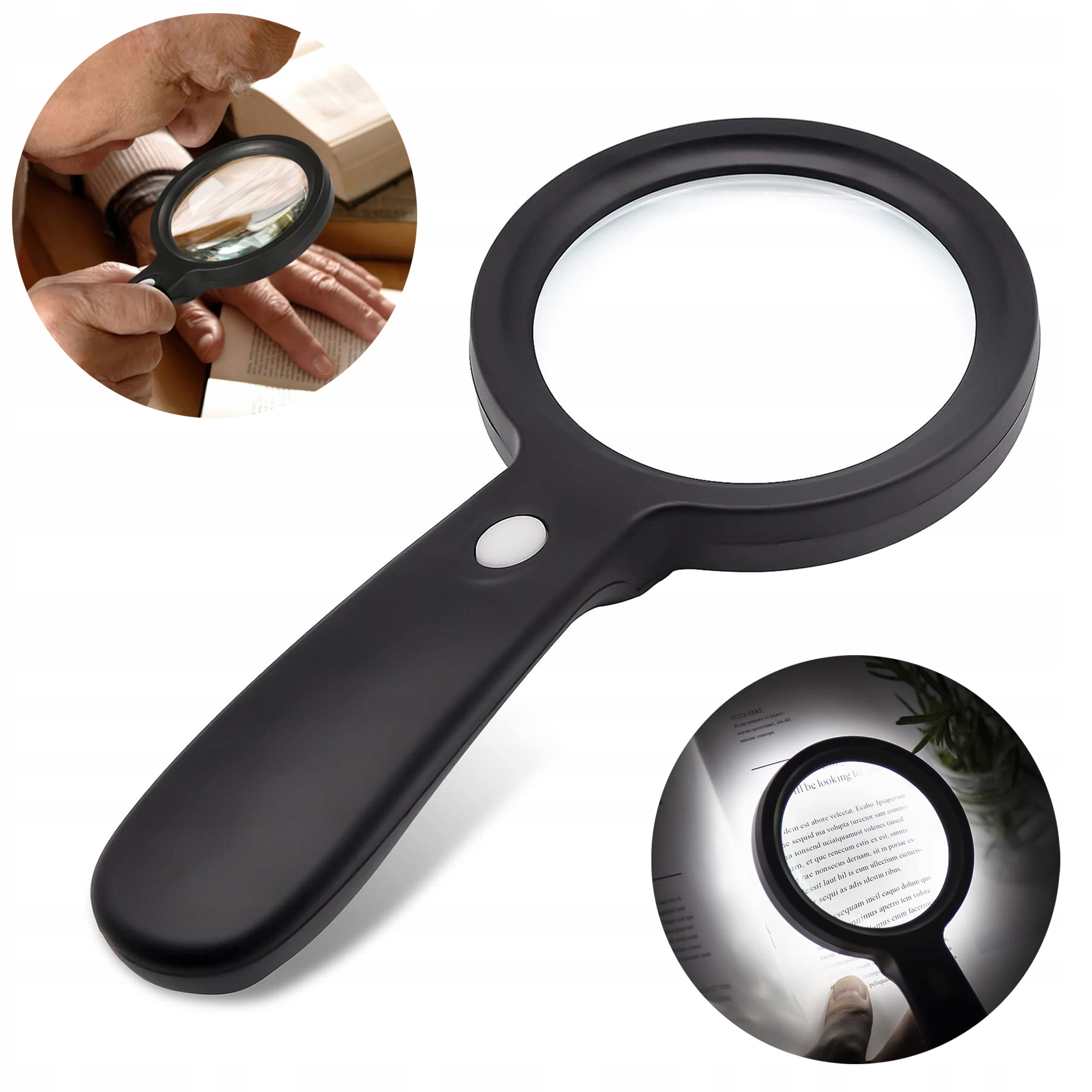 Ця ручна лупа з 12 світлодіодними лампами, 12 світлодіодами з енергозберігаючим ефектом є видимою, щоб допомогти вам читати вночі або в темних місцях; виклик простою кнопкою включення/вимикання; Живлення від 3 батарейок типу ААА (батарейки не входять у комплект),допоможе вам читати навіть в умовах поганого освітлення!