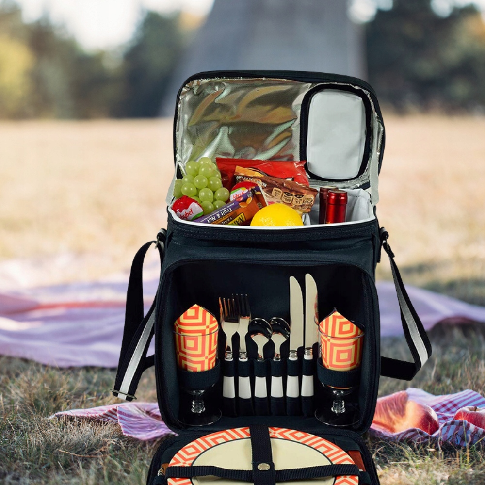 Нашу святкову сумку створено для сімейних зустрічей просто неба. Він досить місткий, щоб розмістити повноцінну вечерю для кількох людей, включаючи тарілки, столові прибори, серветки та інші необхідні аксесуари.