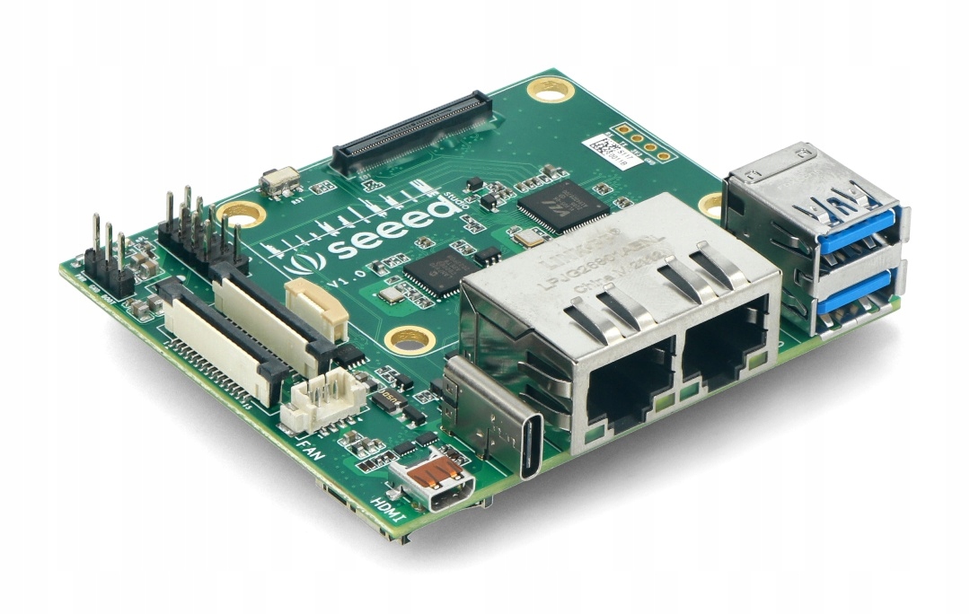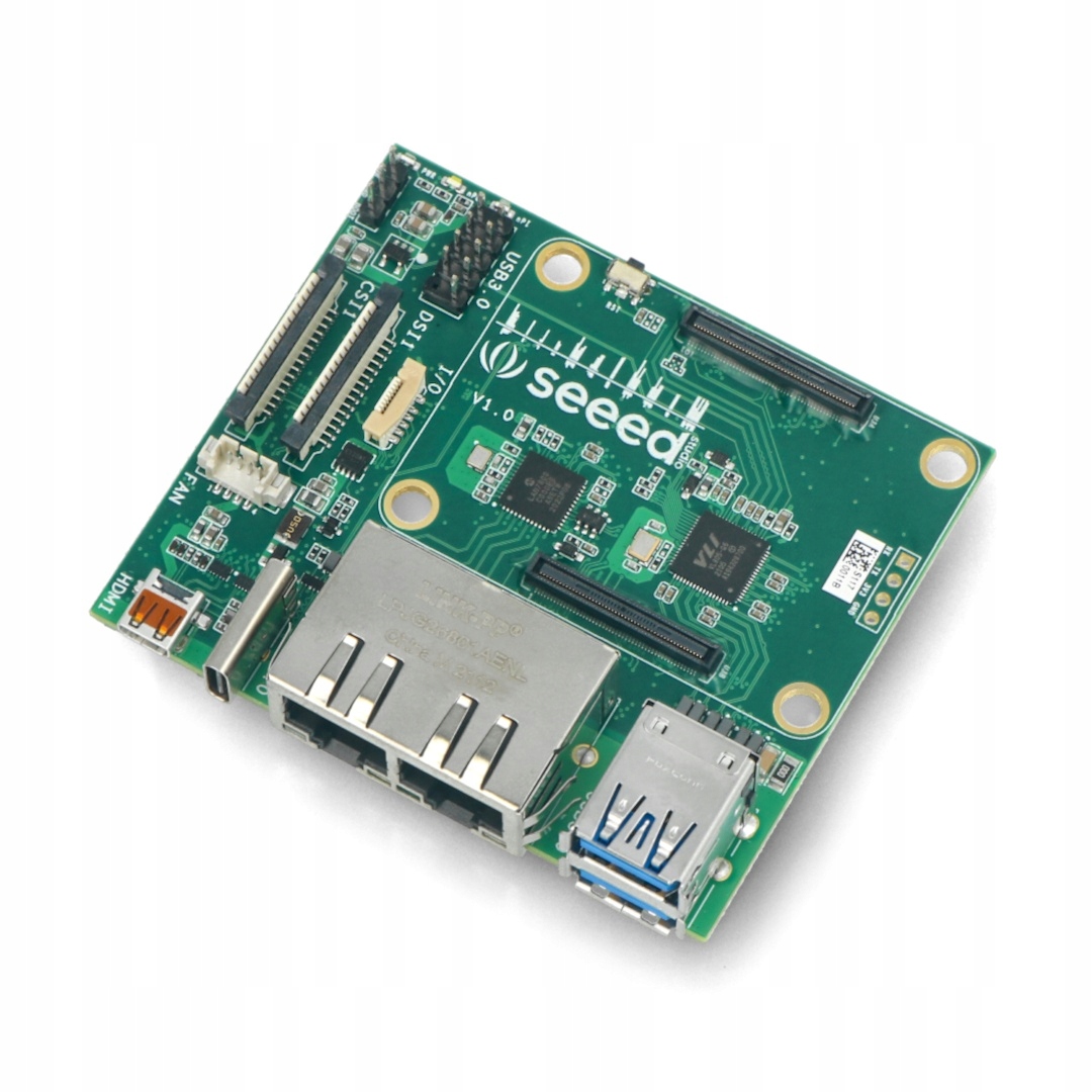 Подвійний модуль Gigabit Ethernet — це плата розширення з 2 роз’ємами Ethernet до 1000 Мбіт/с, 2 портами USB 3.0 і низкою периферійних пристроїв, таких як CSI, DSI, microHDMI , роз'єм FPC для інтерфейсів I2C і SPI, виводи UART, слот для карт microSD і роз'єм для підключення вентилятора. Великою перевагою плати є використання такої кількості роз’ємів при збереженні невеликих компактних розмірів 75 x 64 x 21 мм.