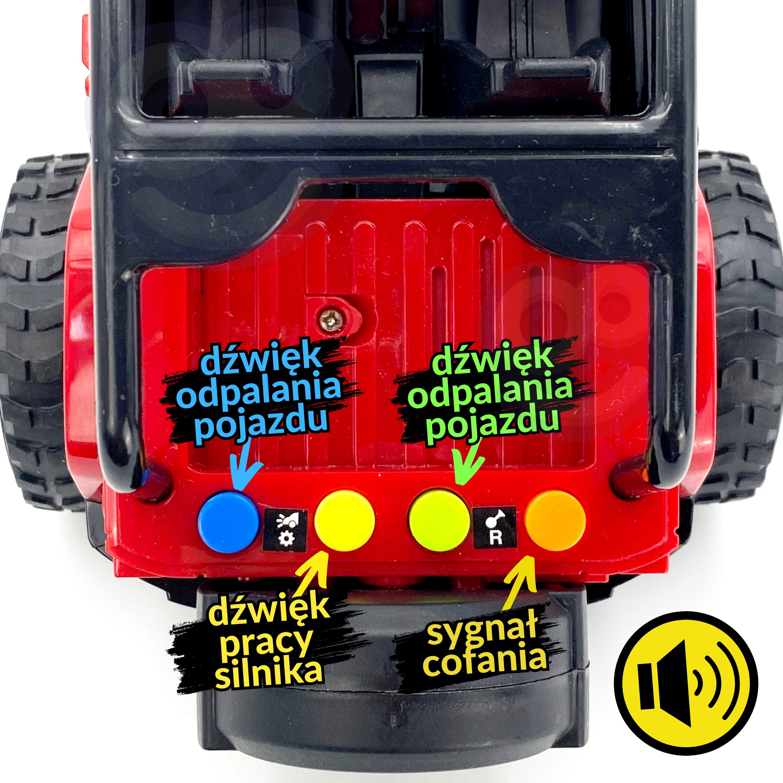 DUŻE AUTO TERENOWE JEEP SAMOCHÓD Z DŹWIĘKIEM ŚWIATŁAMI INTERAKTYWNE WOOPIE
