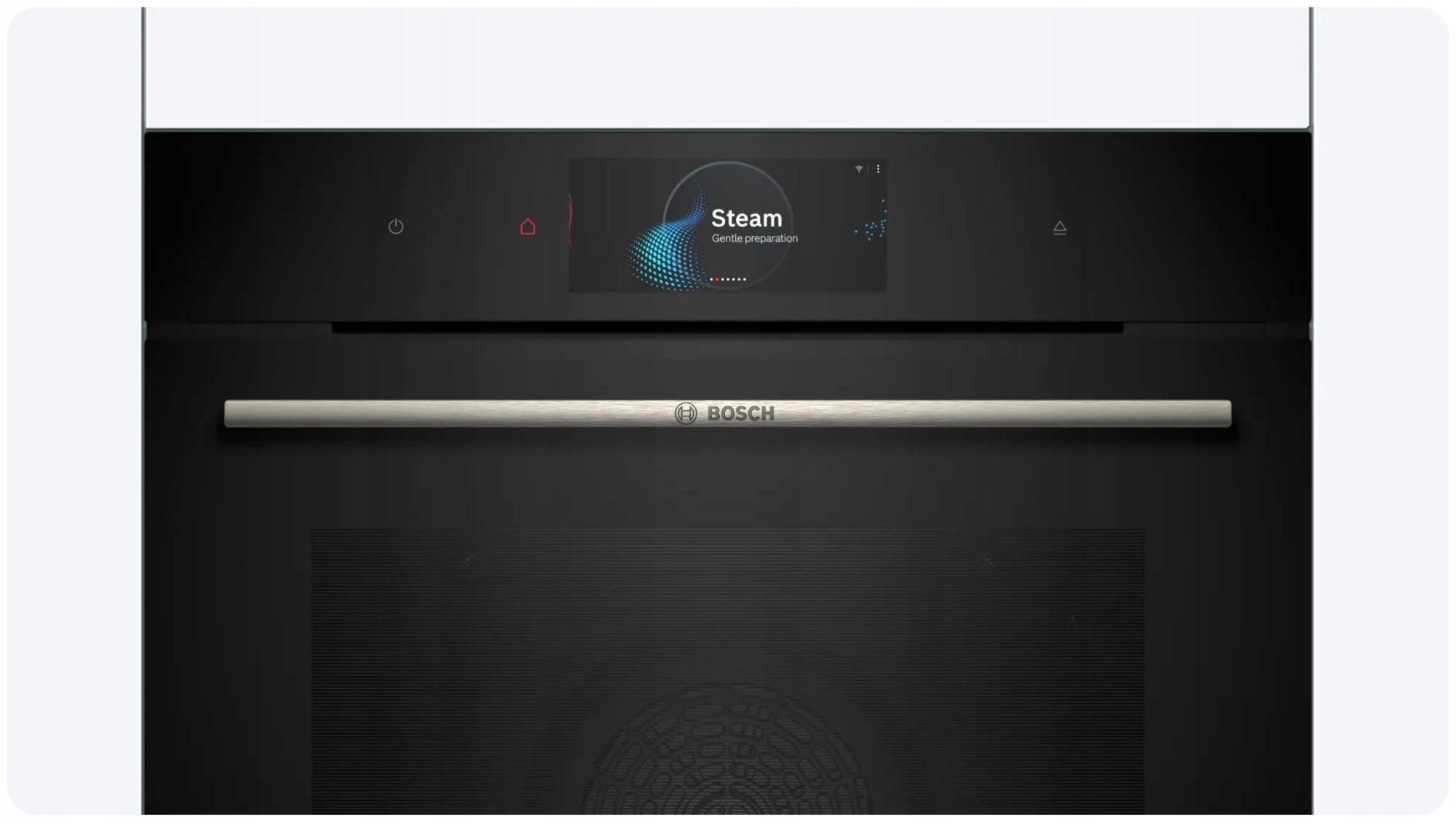 Хочете розкрити весь потенціал своєї духовки? Просто підключіть його до свого зареєстрованого облікового запису Home Connect (www.home-connect.com), щоб керувати пристроєм будь-де, будь-коли та як завгодно. Ви також можете використовувати голосове керування за допомогою програми Amazon Alexa або Google Assist. Запускайте та зупиняйте функції, змінюйте налаштування та керуйте улюбленими – не виходячи з кухні. Програма надішле ваші налаштування безпосередньо в піч, і ви отримаєте push-повідомлення, коли замовлення буде виконано. Оновлення програмного забезпечення дозволить постійно модернізувати роботу печі. Насолоджуйтесь приготуванням за вашими правилами.
