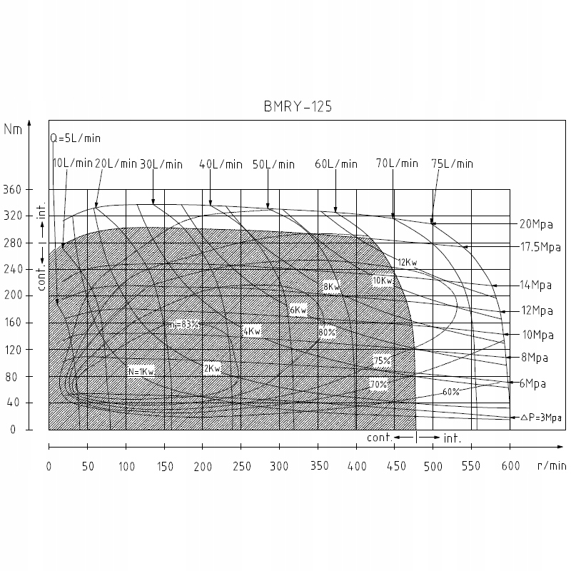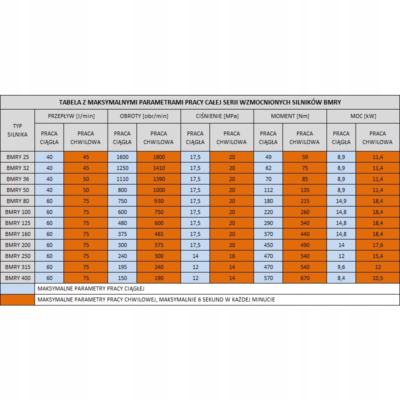 посилений гідравлічний двигун BMRY 125, призначений для важкої роботи в сільськогосподарських та промислових пристроях. Максимальні параметри в безперервній роботі: потік 60 л/хв, оборот 480 об/хв, тиск 175 бар, потужність 14,8 кВт, крутний момент 290 нм.
