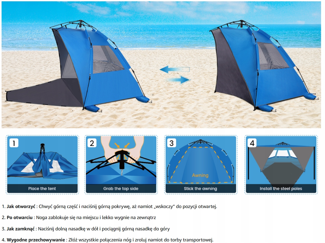 - 【does not require mounting】 thanks to the improved automatic assembly technology, you can forget about the troublesome folding and folding of the beach tent, because you can fold it in 3 Хвилини та насолоджуйтесь хорошим гумором з коханою людиною. Розслаблення вдома або у дворі