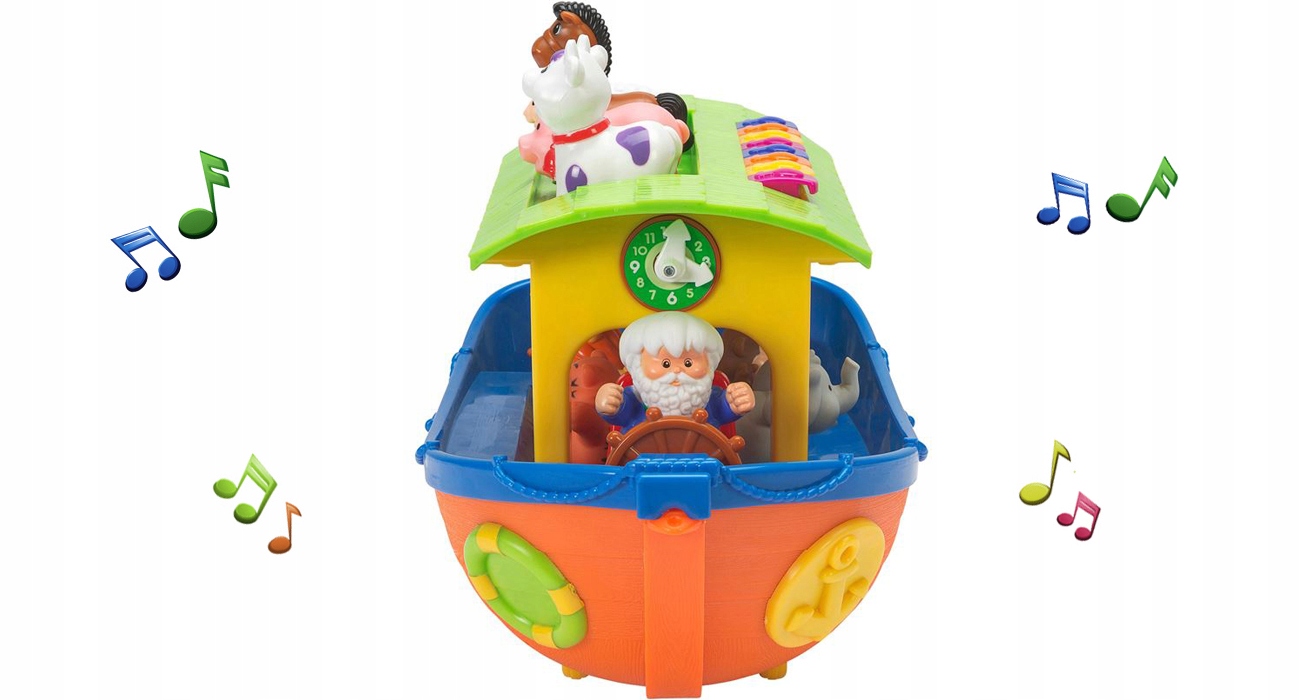 Під час обертання кермо ковчега видає реалістичні звуки та мелодії. На даху за тваринами вбудовано барвисте міні-піаніно, натискаючи на клавіші якого можна почути звуки різноманітних мелодій.