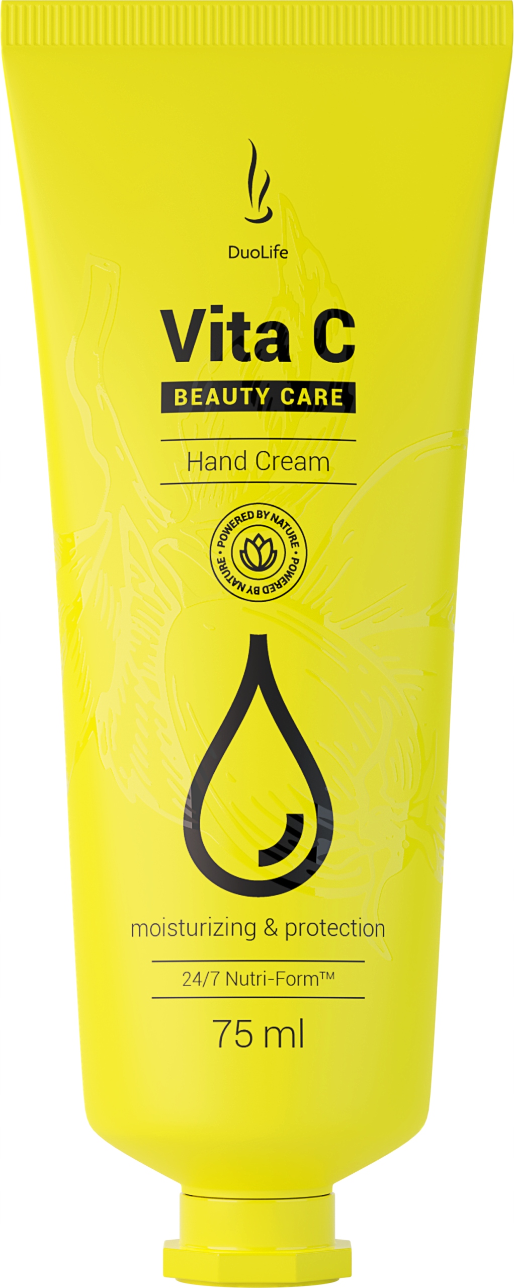 Зволожуючий та захисний крем для рук Duolife Beauty Care Vita C - багатий «вітамінами краси» (E, C і F) - ідеальна омолоджуюча терапія шкіри ваших рук. Завдяки формулі вітаміну, ECF 24/7 Nutr-Form ™, збагачений маслом ши, допомагає гладити та відновити еластичність шкіри та боротися з її роздратуванням, і перш за все зменшує ранні ознаки старіння. Duolife Beauty Care Vita C також забезпечує адекватну гідратацію шкіри.