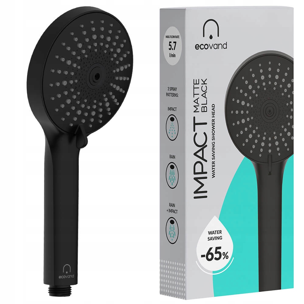 ✅ Відкрийте для себе унікальну душову лійку EcoVand Impact Matte Black - насолоджуйтеся різноманітністю потоків і зменште свої рахунки за воду