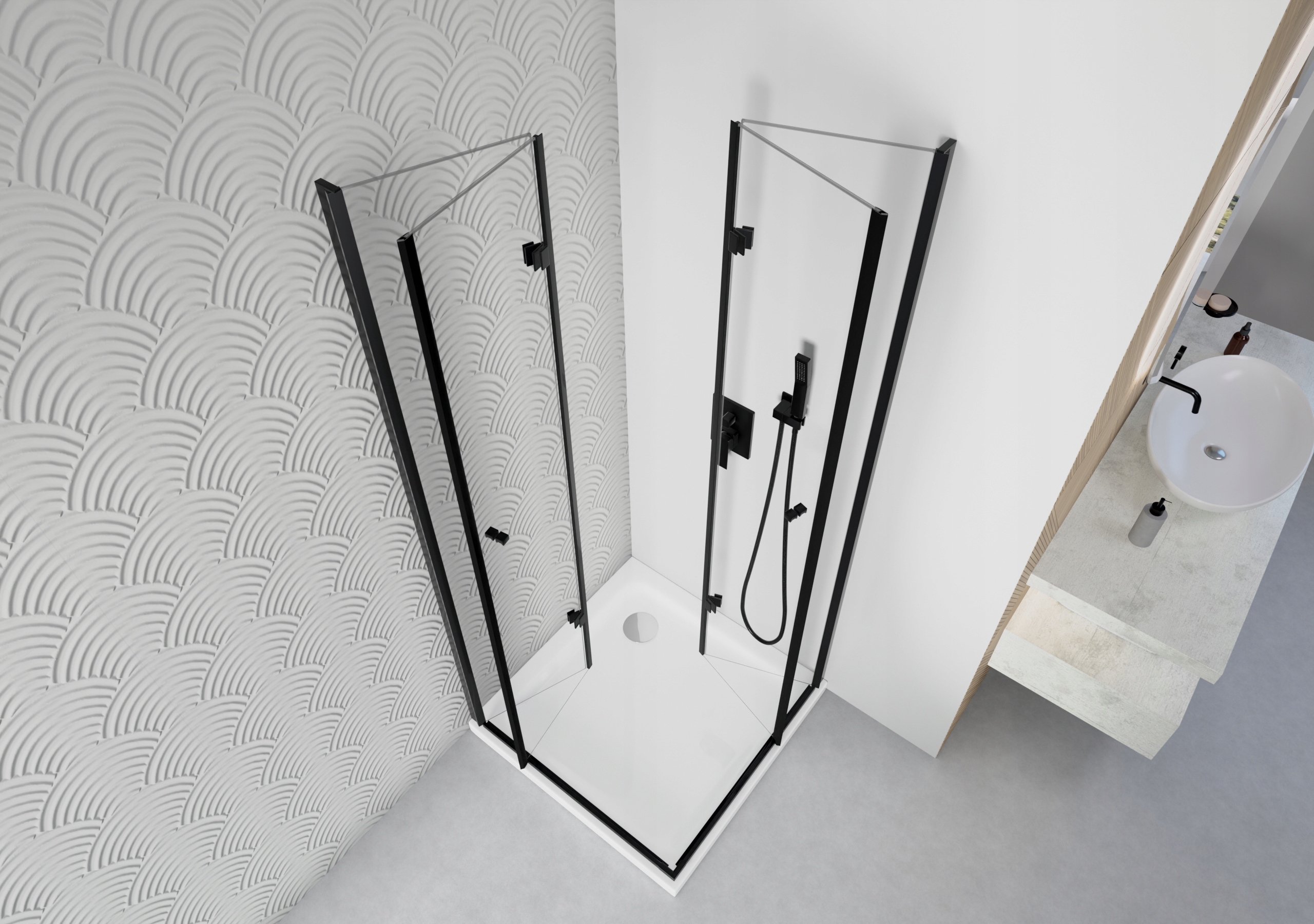 ДУШОВА КАБІНА 100х100 СКЛАДНА ЧОРНА ДВЕРІ СКЛО НАСТІННЕ СКЛО 6ММ