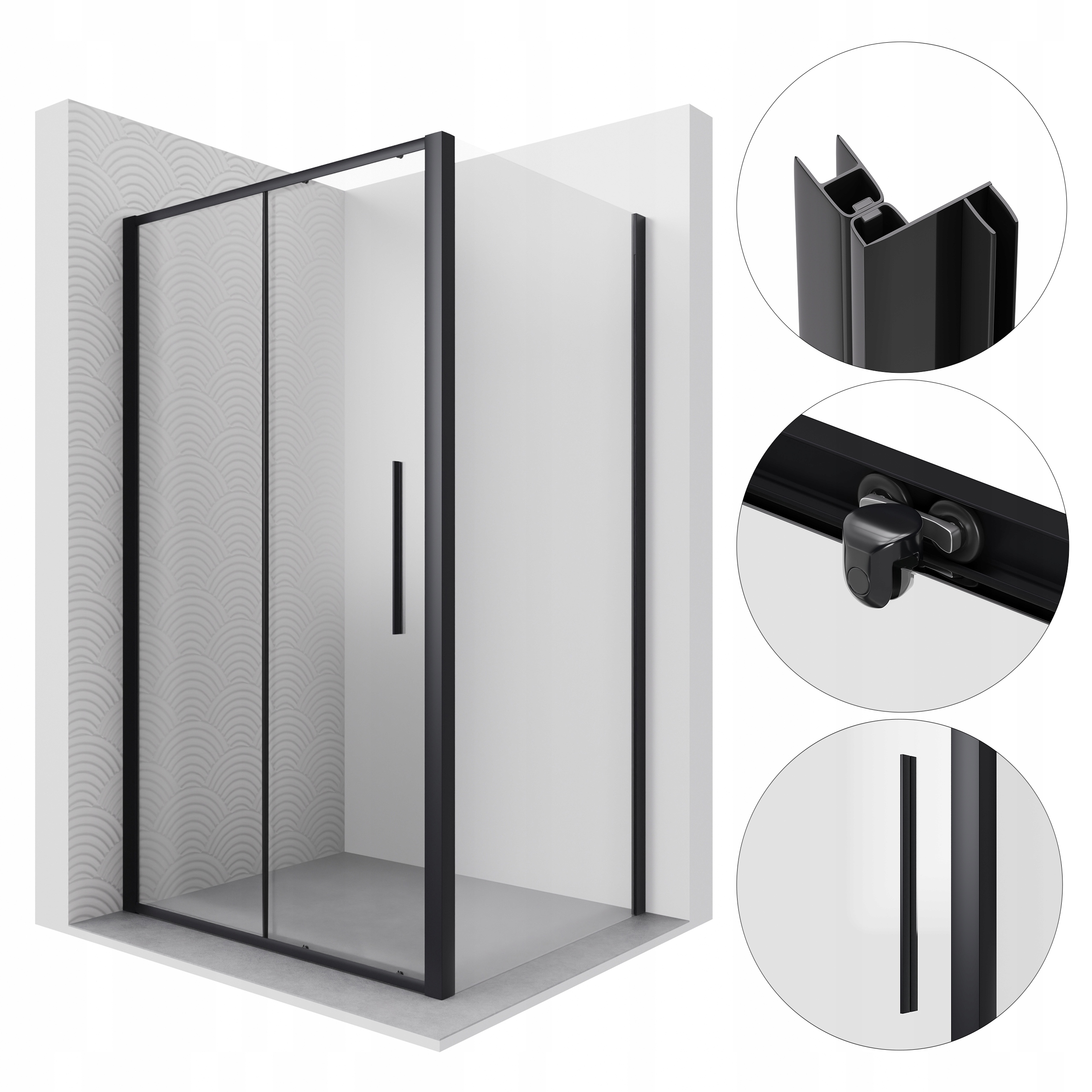 ДУШОВА КАБІНА 120х90 ЧОРНА ПРЯМОКУТНА РОЗСУВНА СКЛЯНА СТІНА