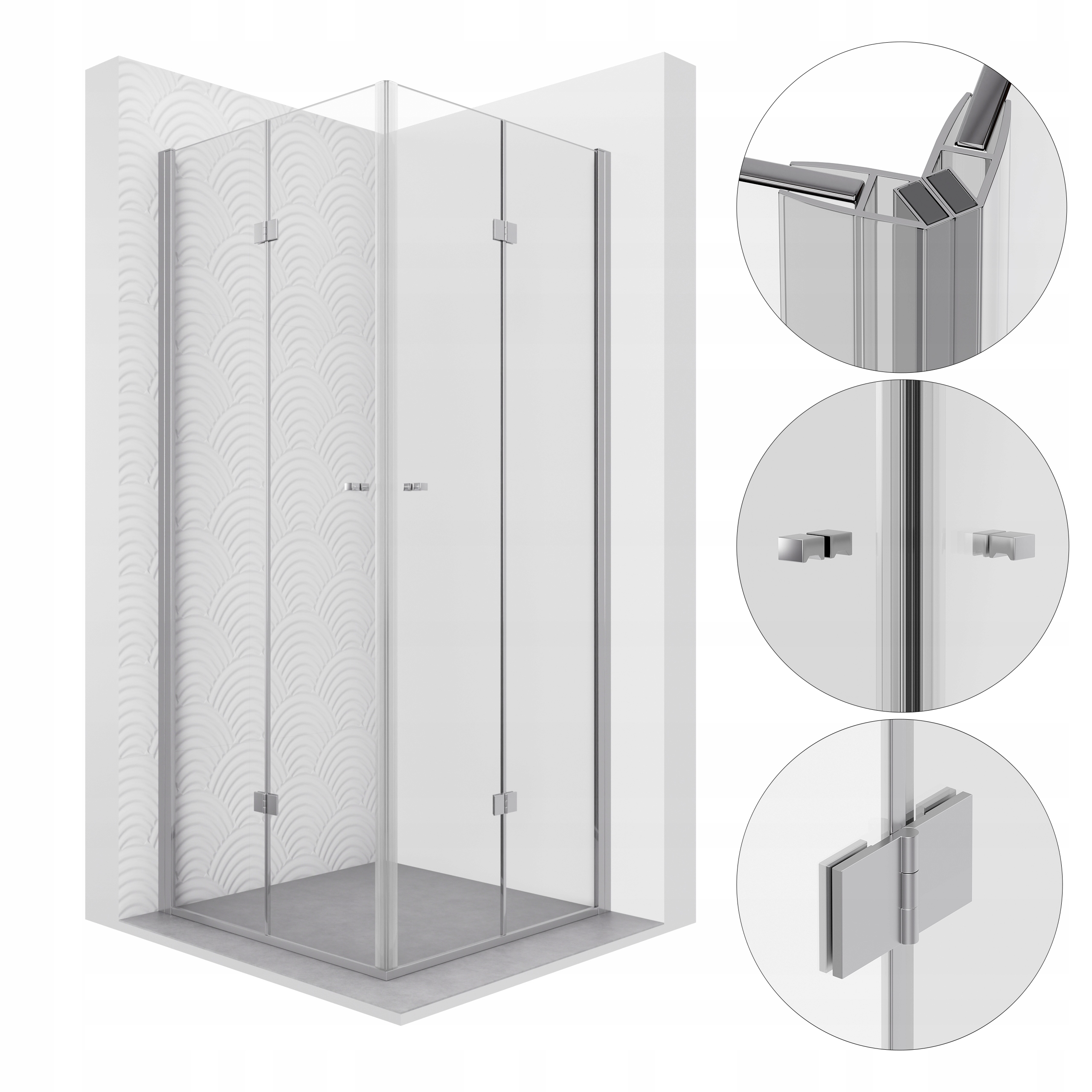 ДУШОВА КАБІНА 80x80 СКЛАДНА ХРОМОВА ДВЕРІ СКЛО НАСТІННЕ СКЛО 6ММ ESG