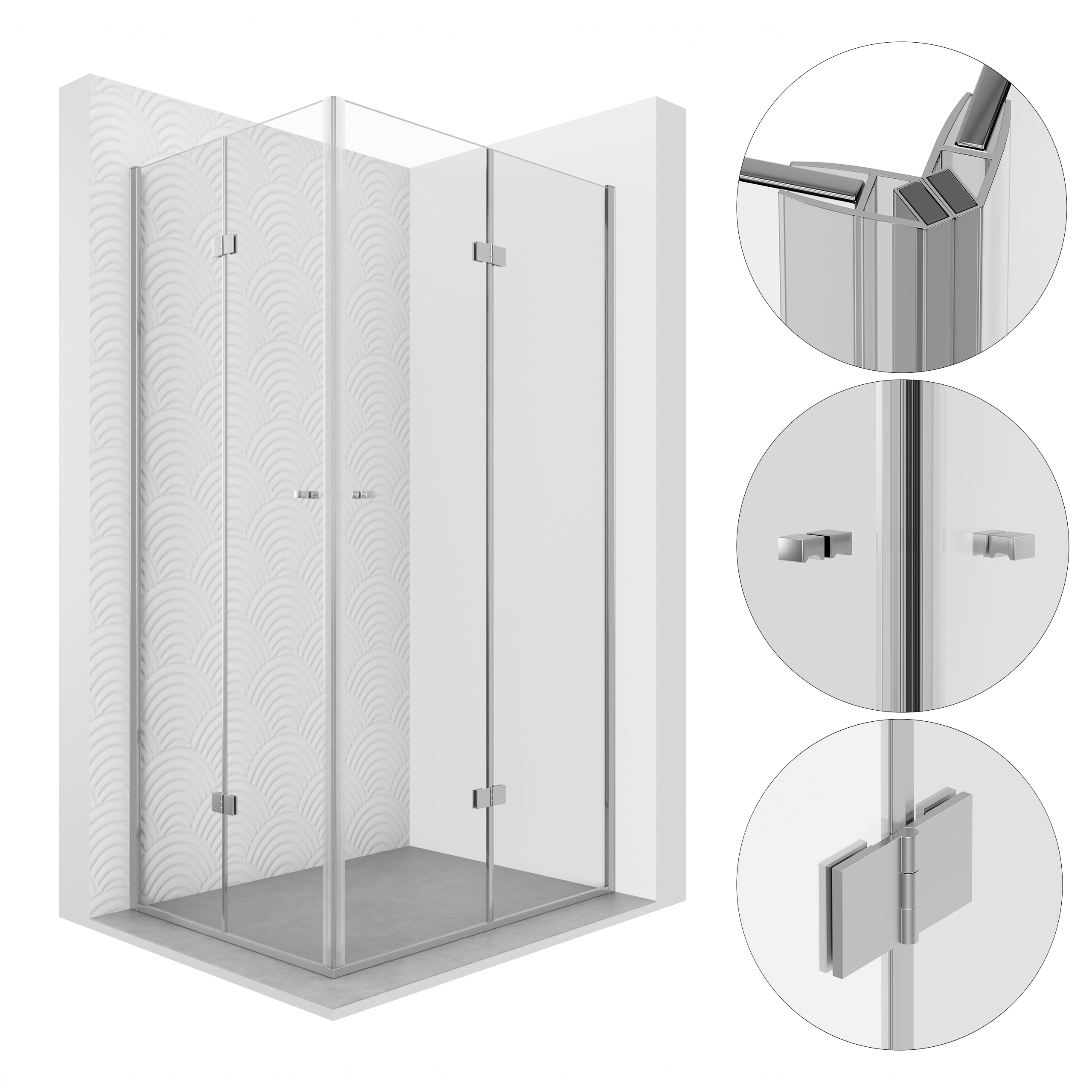 ДУШОВА КАБІНА 80x90 СКЛАДНА ХРОМОВА ДВЕРІ СКЛО НАСТІННЕ СКЛО 6ММ ESG