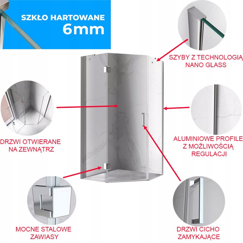 ДУШОВА КАБІНА П'ЯТИКУТНА З ПІДДОНОМ KZ10A/ST08A ХРОМ/ЧОРНИЙ 80x80