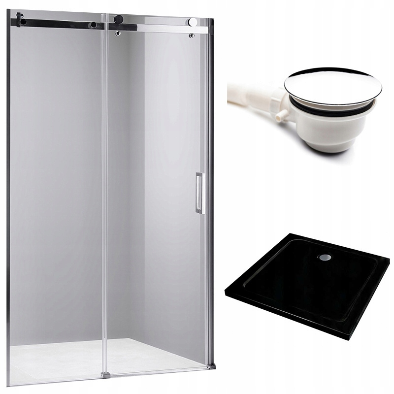 ДУШОВІ ДВЕРІ З ПІДДОНОМ SH03B/ST06A ХРОМ/ЧОРНИЙ 95-100/100x100 СМ 8 ММ