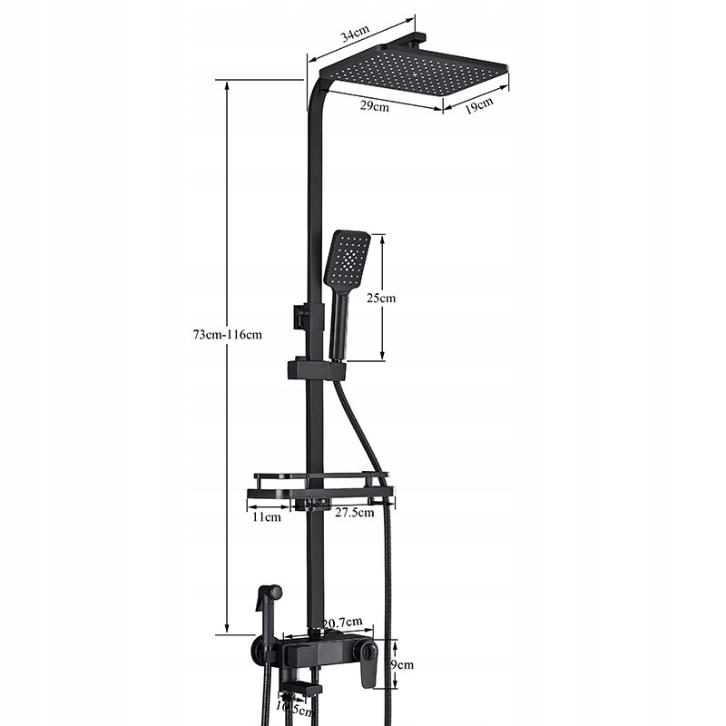 ДУШОВИЙ НАБІР Накладний душ для ванної кімнати з LCD тропічним душем ЧОРНИЙ