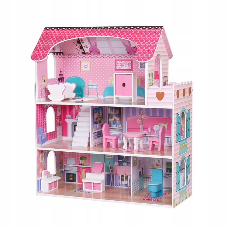 DUŻY DREWNIANY DOMEK DLA LALEK zestaw MEBLE ŚWIATŁO MEBELKI MDF ŚWIATŁA LED