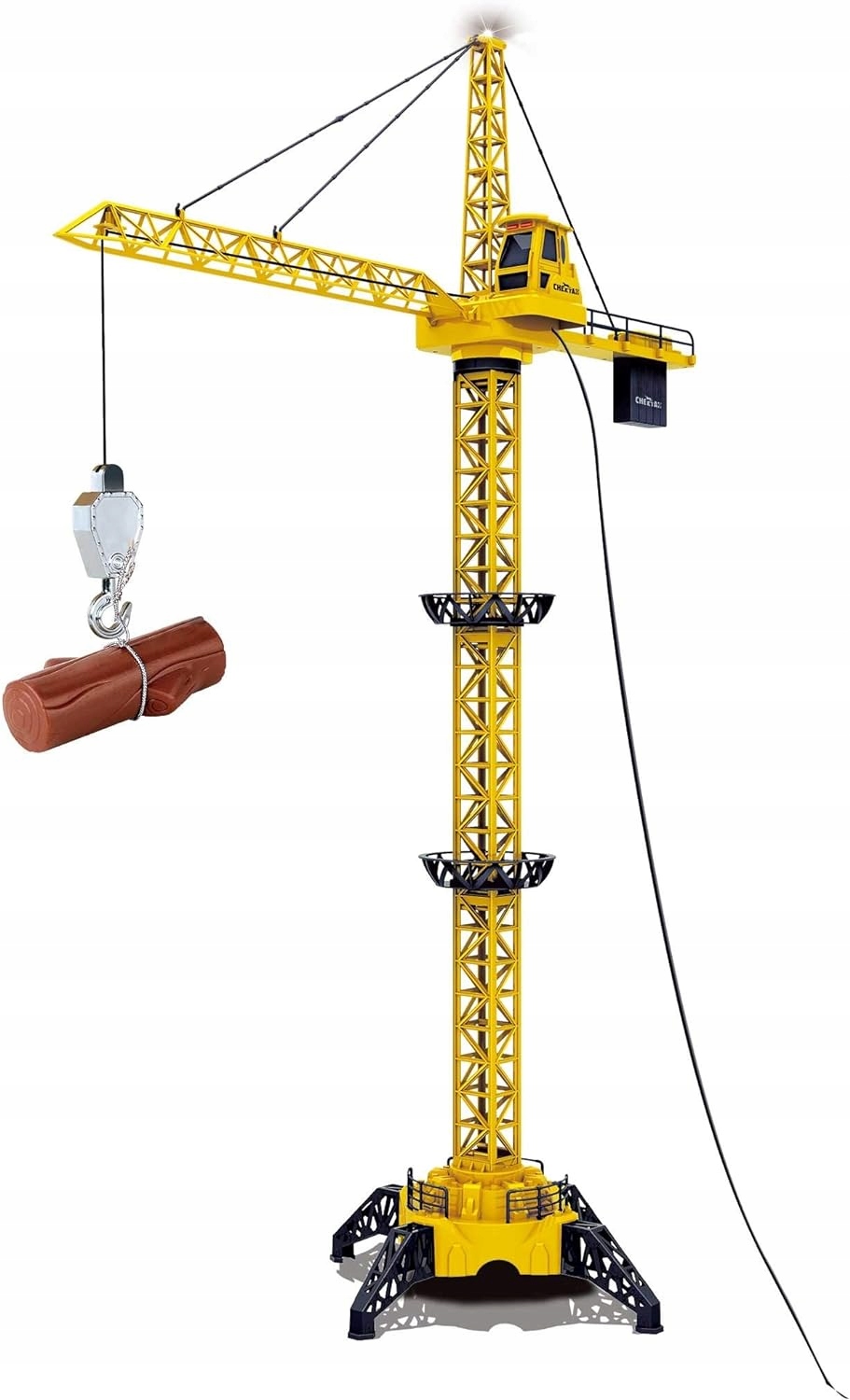 ✔️Стійка конструкція |✔️Діод на верхній частині крана |✔️Блок живлення дистанційного керування: 4 x AA (не включено) |✔️Висота: 128 см |✔️Функції дистанційного керування: обертання крана ліворуч/праворуч, підйом/опускання гака | ✔️Світлові та звукові ефекти