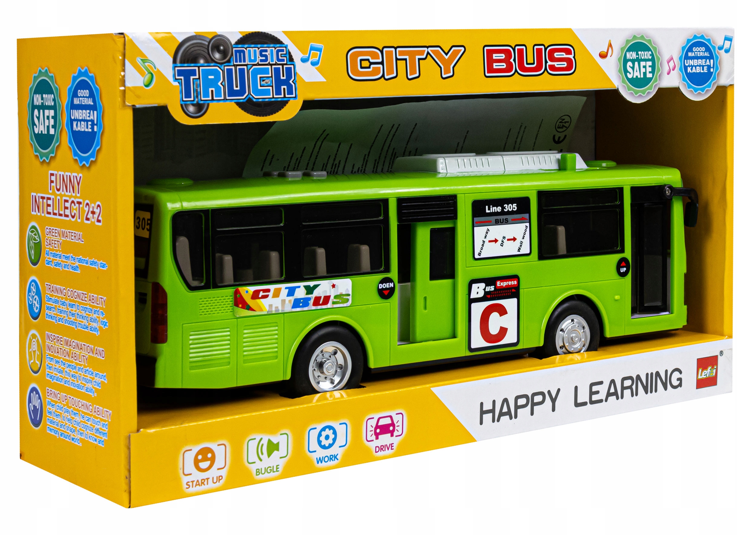 Наш автобус є мініатюрною версією справжнього міського автобуса. Він був розроблений з увагою до кожної деталі - його кольори відображають справжні міські автобуси, а двері, що відчиняються, реалістичний звук і гумові шини зробити гру максимально автентичною.