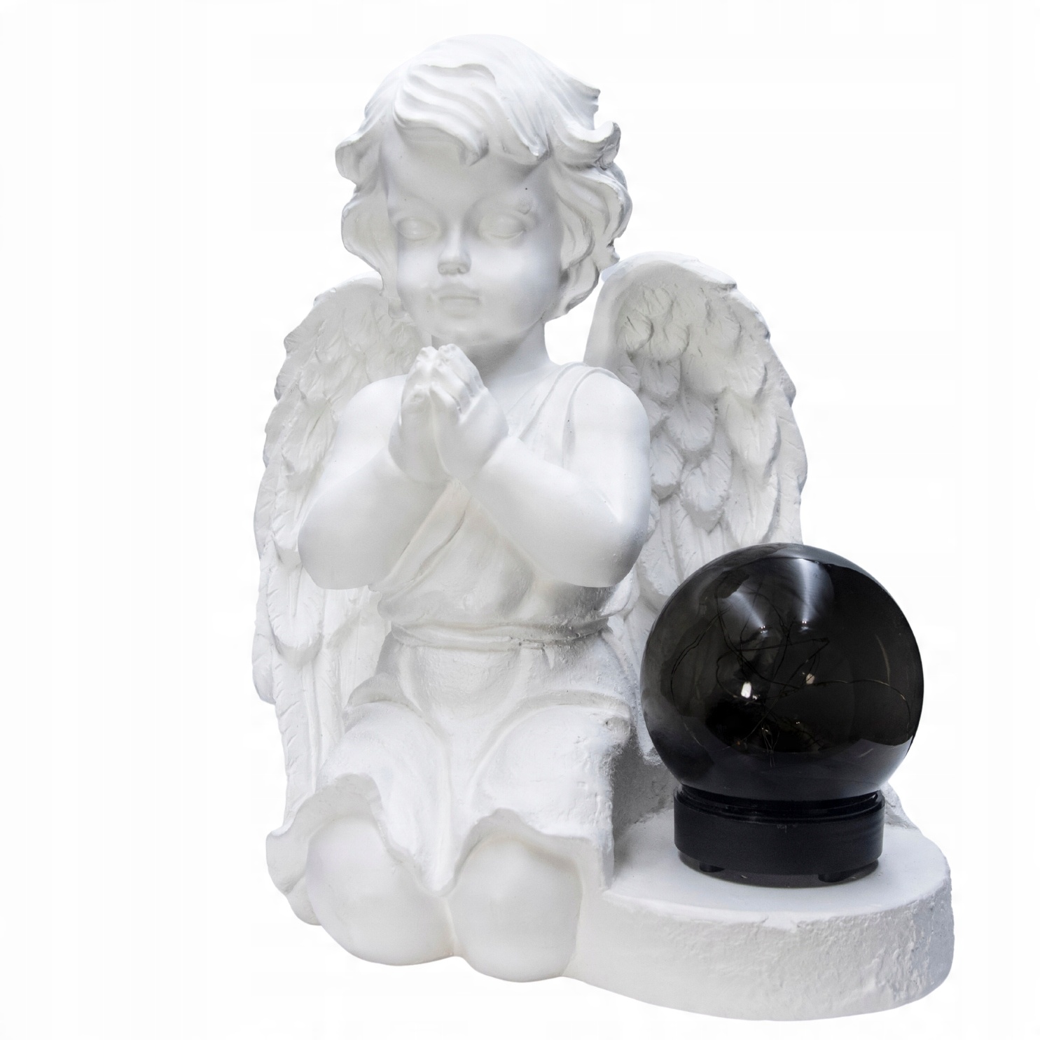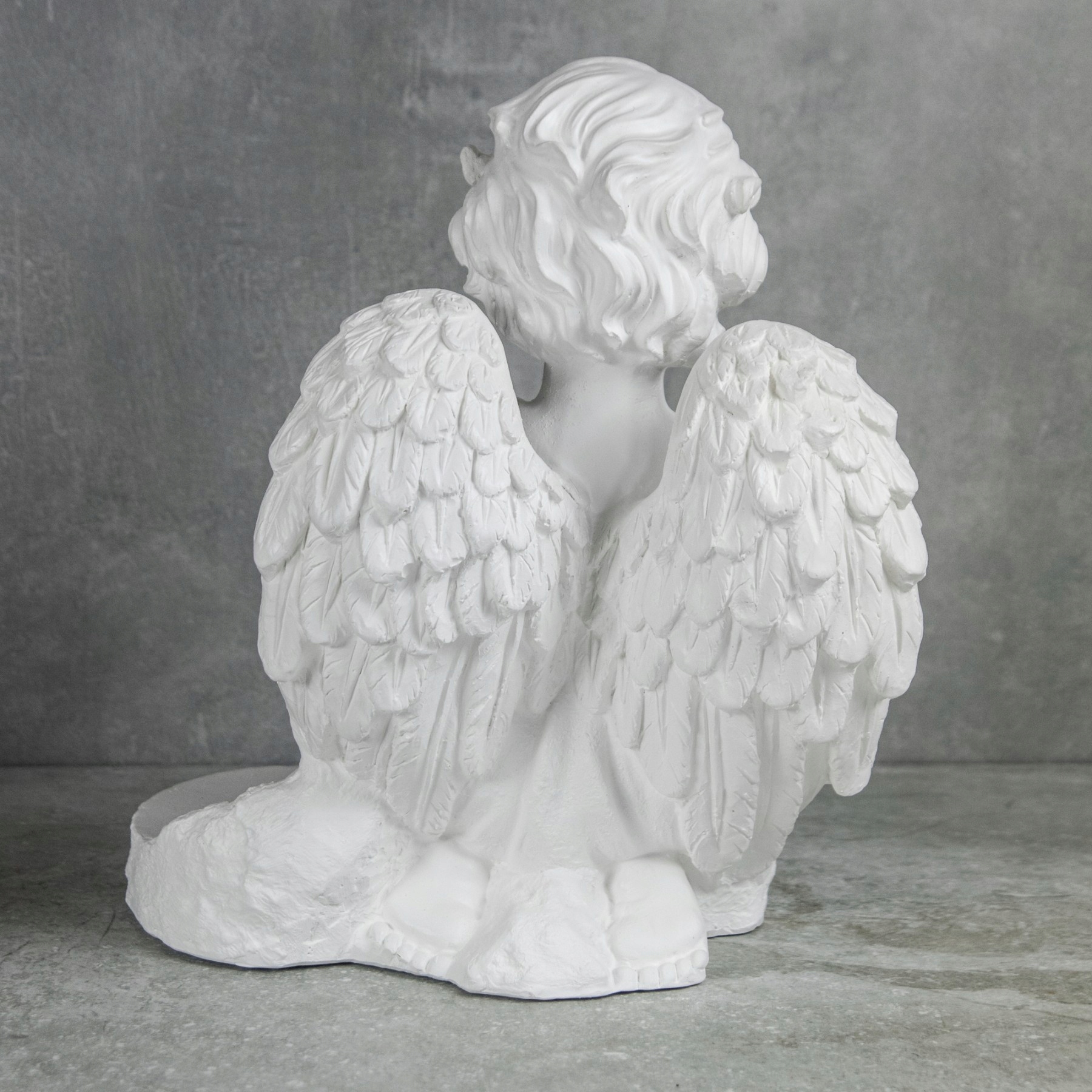 ➡️ Декоративна гіпсова садова фігурка, надгробок зі світлодіодною лампою у формі ангела - БІЛА