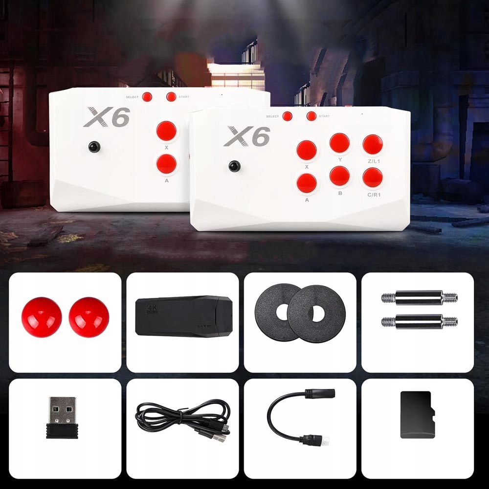 🎮【Подвійний бездротовий аркадний контролер 2.4G】Ретро-ігрова консоль оснащена подвійним джойстиком. Бойова палиця з нержавіючої сталі на 360° з 6 кнопками керування, оснащена гумовою підставкою для рук, зручна та міцна. Чотири присоски міцно адсорбовані та не рухаються під час використання, що є дуже стабільним.