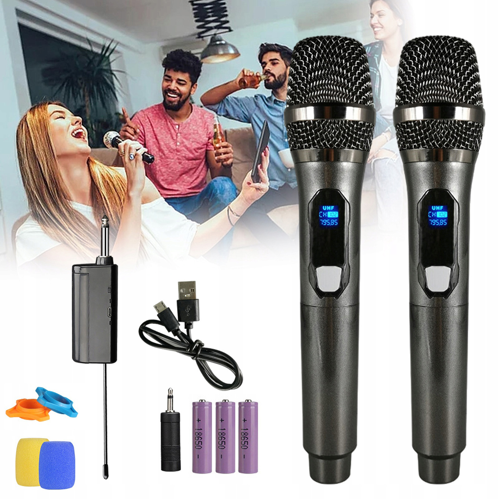 Два бездротових мікрофона для караоке 50 м + 3 батареї + аксесуари