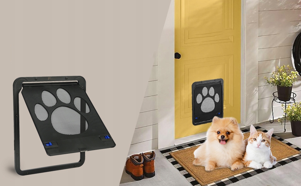 🐶 【Автоматичне закривання та блокування】: вбудований магнітний клапан, який може автоматично закриватися. Двері закриваються автоматично, коли вихованець йде. Ви навіть можете закрити двері, щоб ваші домашні тварини не виходили на вулицю вночі або коли вас немає вдома. Якщо ви шукаєте віконні двері для домашніх тварин і хочете створити гарний прохід для свого кота чи собаки, це чудовий вибір.