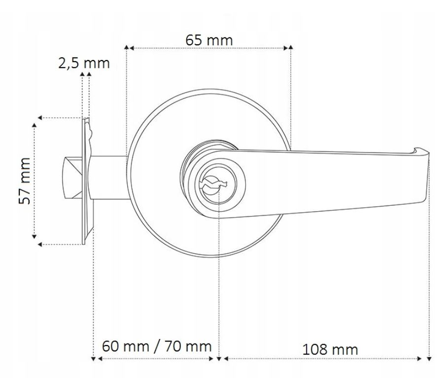 - відстань від грані замка до осі замка: 60 мм / 70 мм - регулюється під час монтажу.