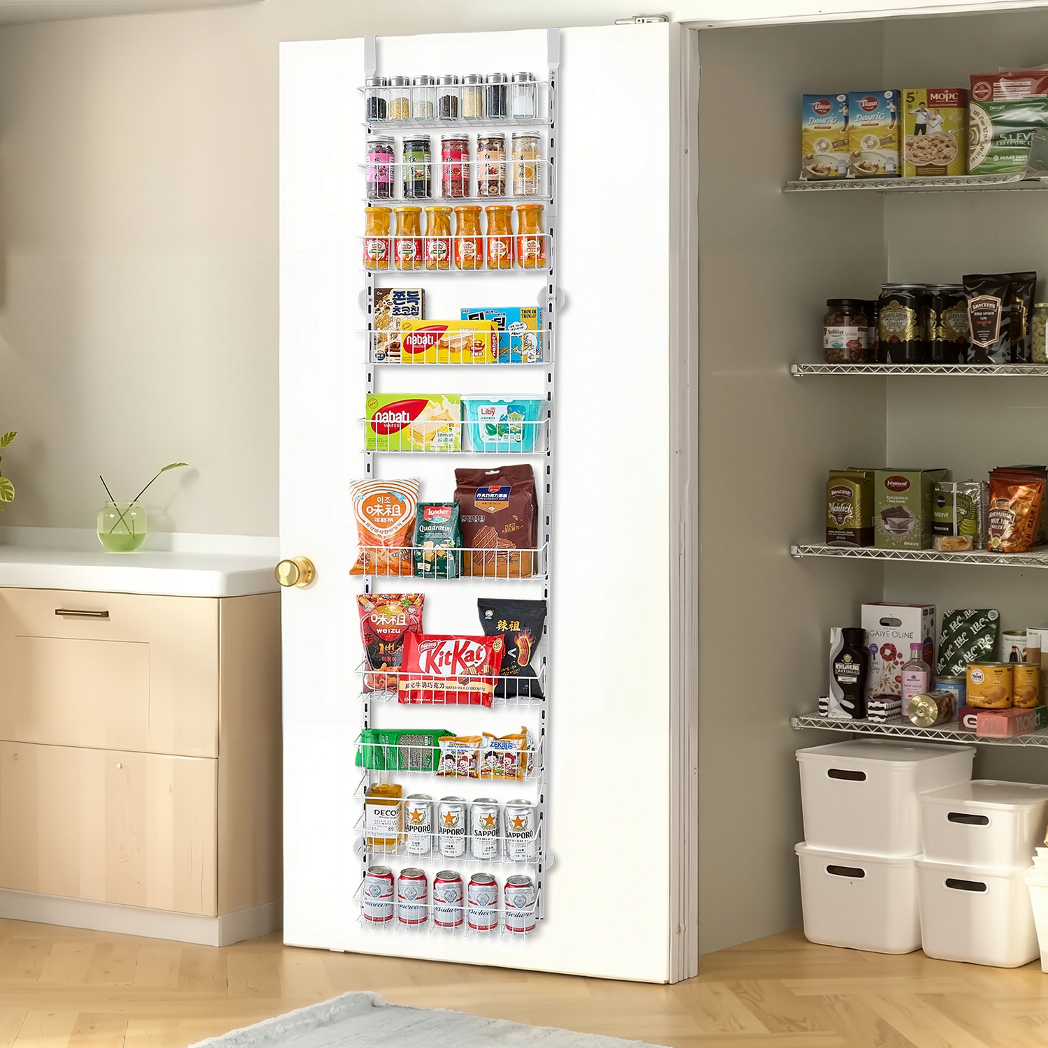 Регульований і простий у складанні: цей стелаж для зберігання та комори має регульовану відстань між кошиками для розміщення предметів різної висоти. Ви можете повісити його на двері або закріпити на стіні за допомогою гвинтів, що входять у комплект. Збірка займає лише кілька хвилин.