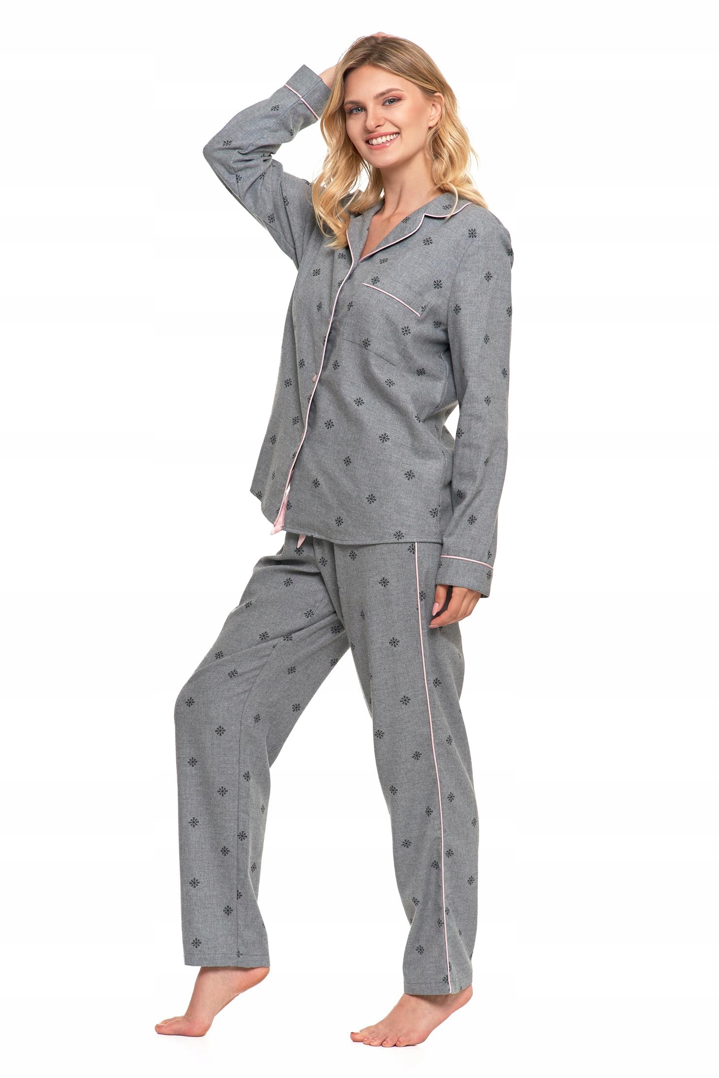 Елегантні жіночі піжами в підкоренему сірому, прикрашеному візерунком у śnieżki, ідеально підходять для людей, які цінують класику в сучасному виданні.