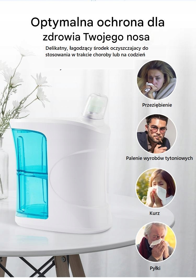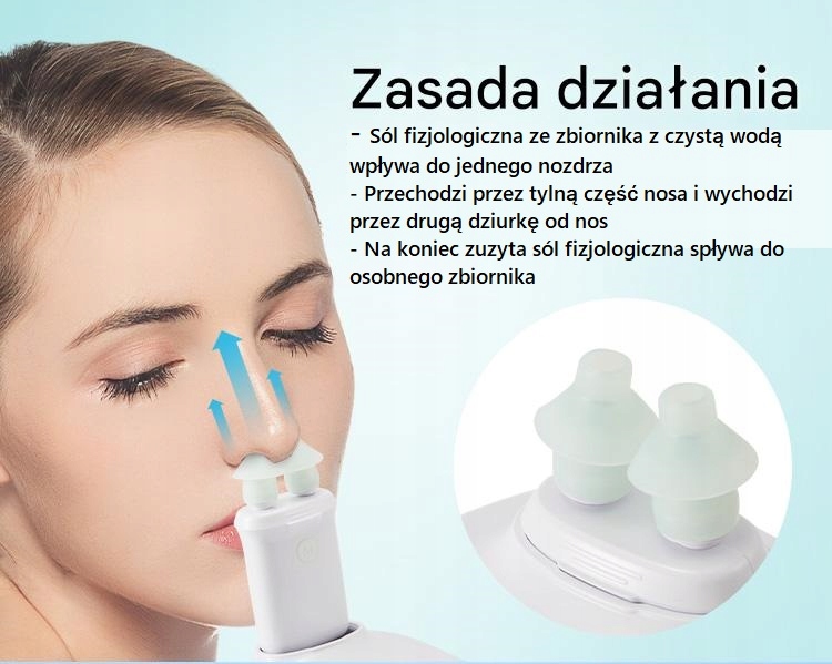 Сольоровий розчин легко протікає з сольового розчину до однієї ніздрі, циркулює по носових протоках і залишає іншу ніздрі, ефективно промиваючи забруднення від носа до окремого резервуара. Прозорий верхній сольовий резервуар має поступову лінію для полегшення моніторингу об'єму води. Крім того, наш пристрій має силіконову ненароджену структуру внизу, забезпечуючи стабільність під час використання.