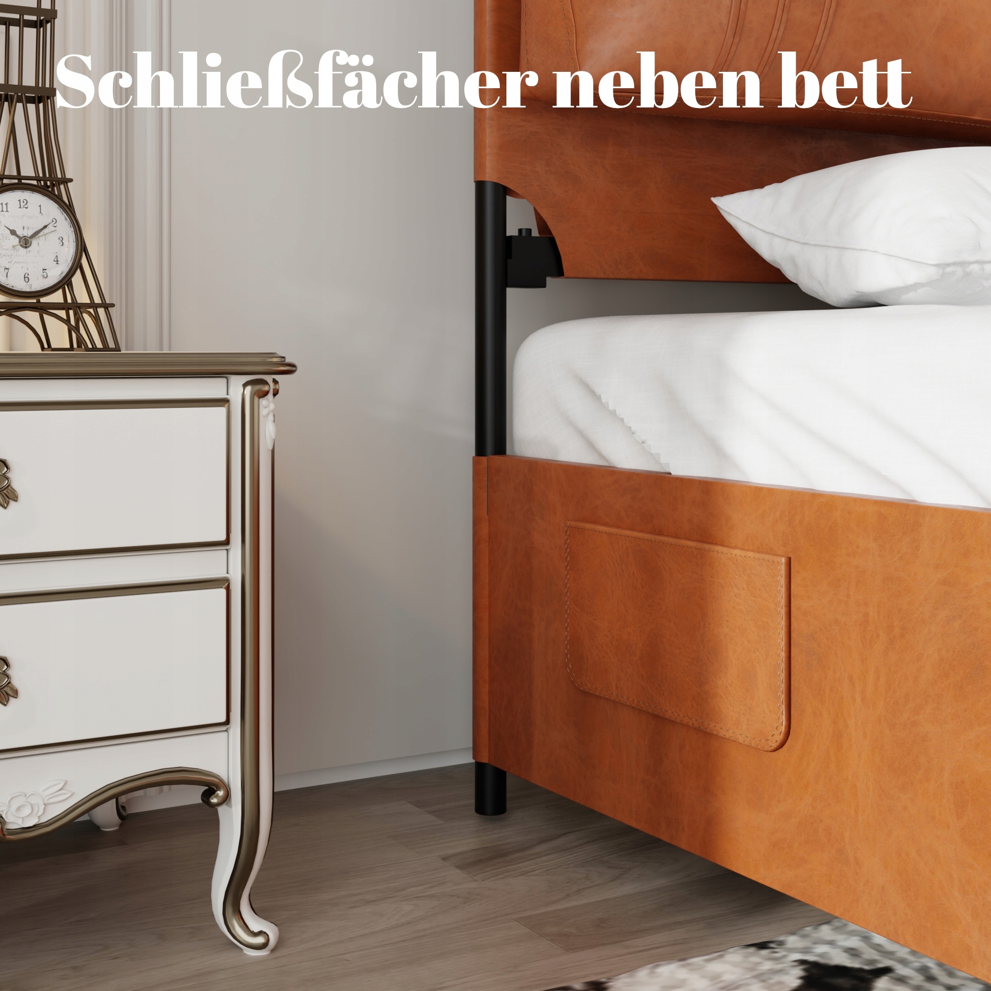 Розкішна, легка і висококласна модель розміром 160*200 з двома м'якими шкіряними подушками, металевою пряжкою, оснащена 4 знімними двофункціональними шкіряними матрацами, без каркасу.