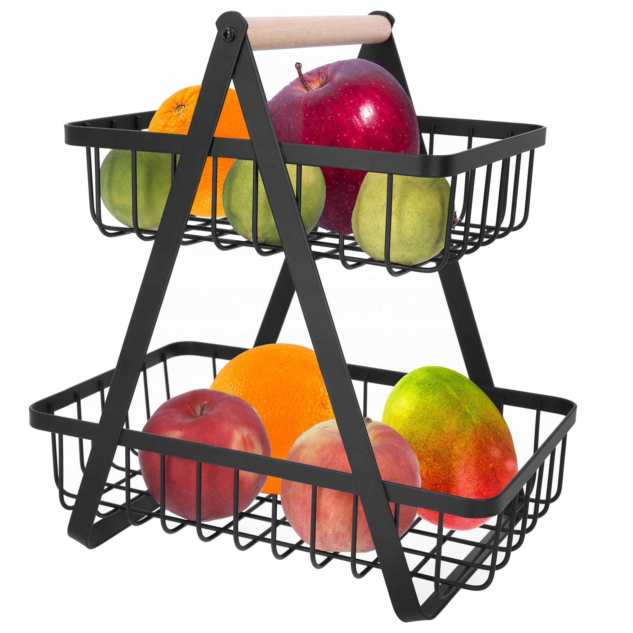 Додайте своїй кухні відтінок сучасності за допомогою нашого стильного кошика для фруктів. Дворівнева конструкція, міцна металева конструкція та елегантна дерев’яна ручка роблять його не лише практичним, але також декоративним і функціональним.