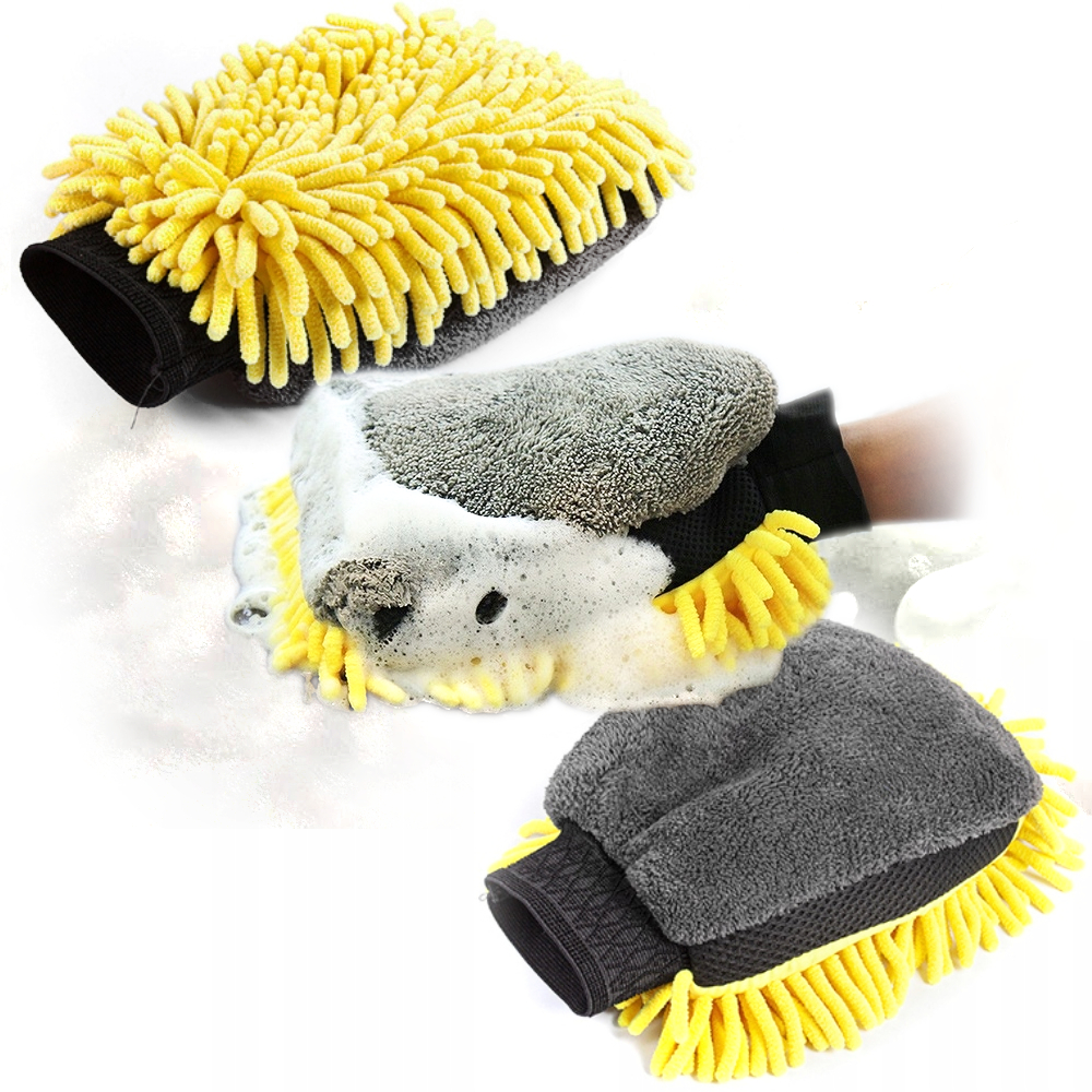DWUSTRONNA RĘKAWICA DO MYCIA SAMOCHODU AUTA mycie wstępne piana MIKROFIBRA