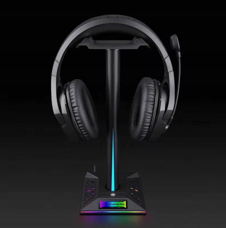 Стійка та стильна підставка для навушників DXS HS2 із підсвічуванням RGB, функцією USB HUB і аудіовходом 3,5 мм