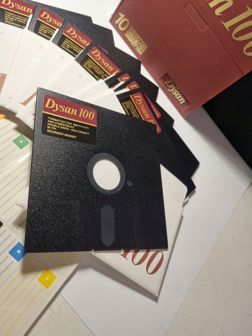 Dysan MD2HD 802607-51 Набір з 9 дискет 5,25 ПК з коробкою та наклейками.