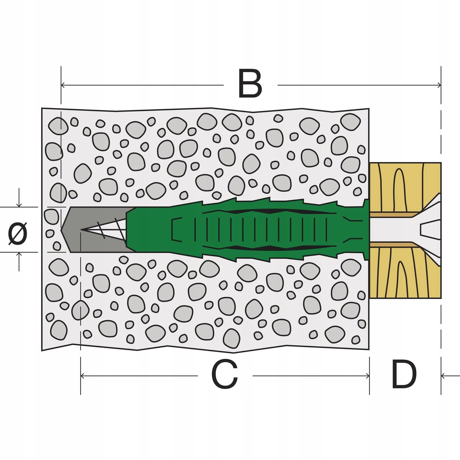 Дюбель підходить для використання в усіх будівельних матеріалах, як усередині приміщень, так і зовні. Манжета запобігає ефекту падіння в попередньо просвердлений отвір і захищає поверхню від пошкоджень. Завдяки фіксатору обертання він залишається стабільним при розміщенні в отворі.
