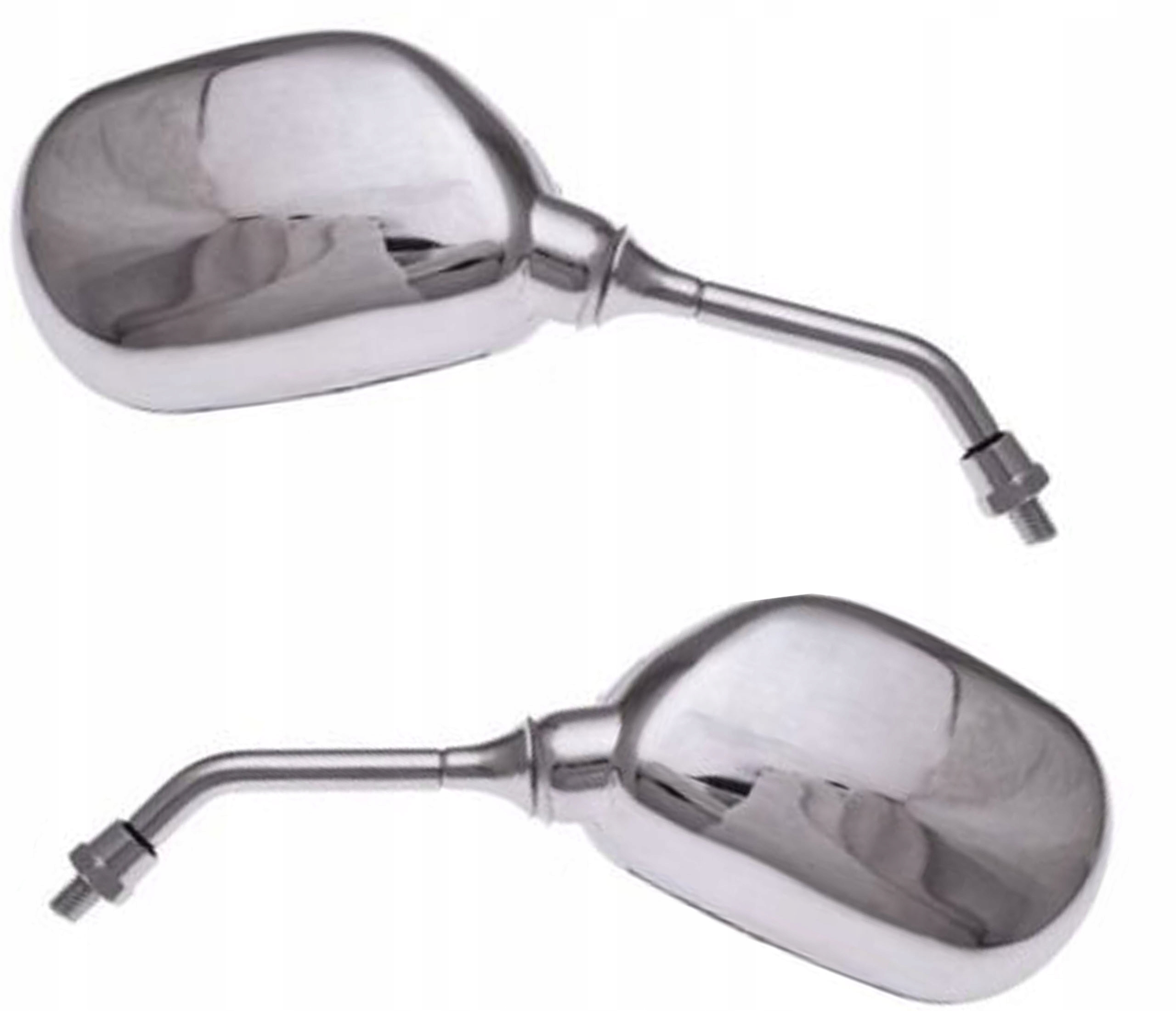 ОПИС: ОВАЛЬНІ ДЗЕРКАЛА ХРОМОВИЙ МАТЕРІАЛ 8 мм. РУКА З МЕТАЛУ З КОНТРОЛЬНОЮ ГАЙКОЮ, ХРОМОВАНИЙ КОРПУС АБС. ЗАСТОСУВАННЯ ДЗЕРКАЛ З ШАРНІРНИМ РЕГУЛЮВАННЯМ