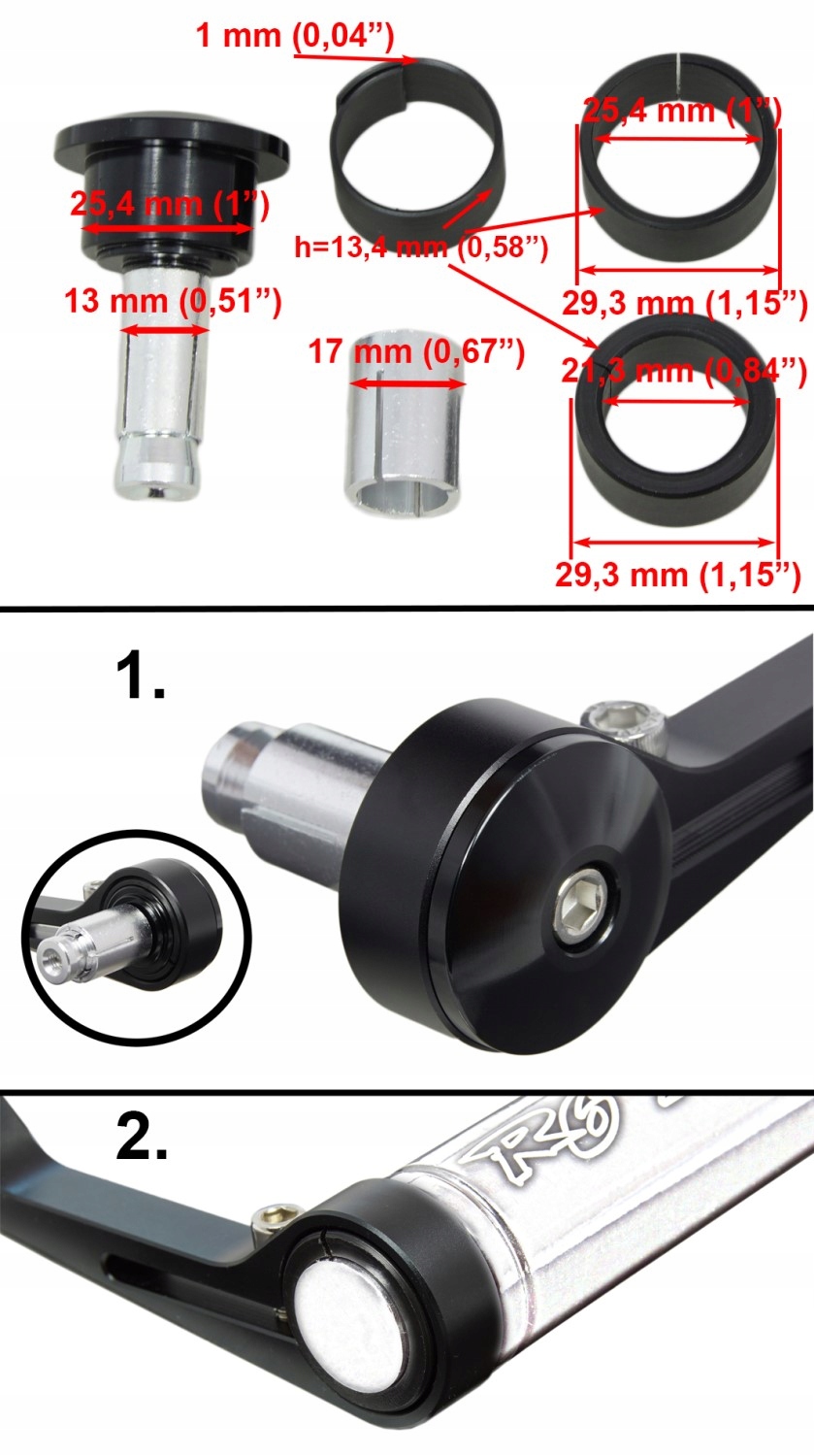 - рульове колесо 25,4 мм (1 дюйм): адаптери, що входять до набору (дзеркала можуть бути встановлені до або позаду перемикачів) Li>