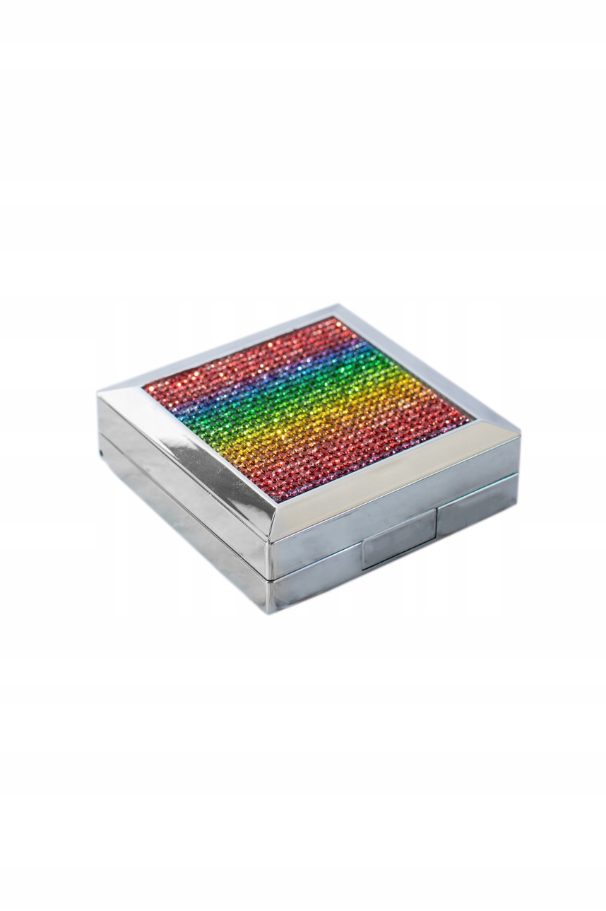 Маленька срібна коробочка з чітким акцентом у вигляді веселки крихітних кристалів містить: