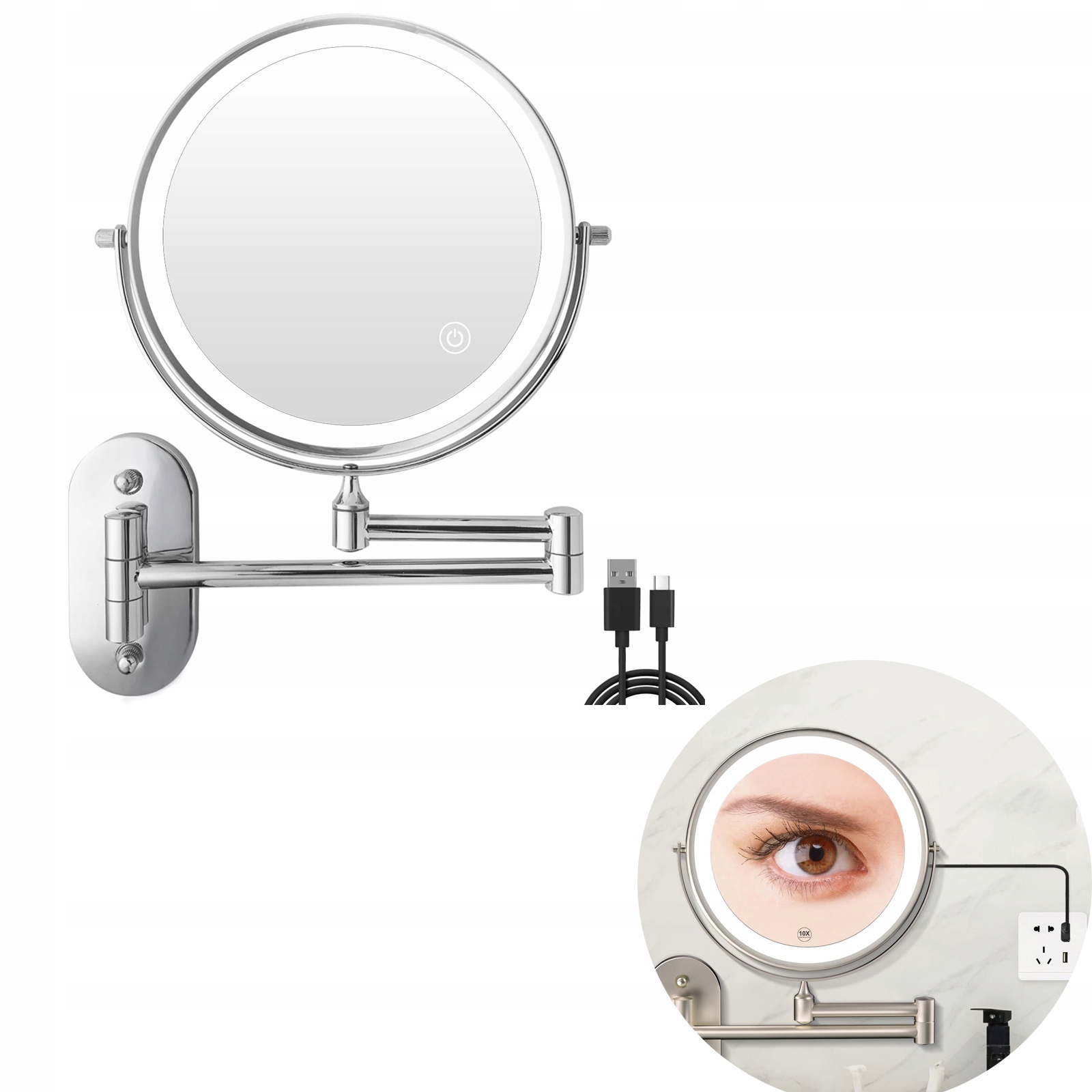 - 1 x перезаряджуване дзеркало для ванної кімнати, косметичне дзеркало з підсвічуванням, 1 x / 10 x сріблясте
