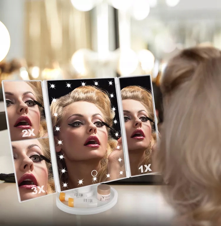 ДЗЕРКАЛО КОСМЕТИЧНЕ 22 LED, 3-Х ЗБІЛЬШЕННЯ, З ПІДСВІЧУВАННЯМ, СКЛАДНЕ