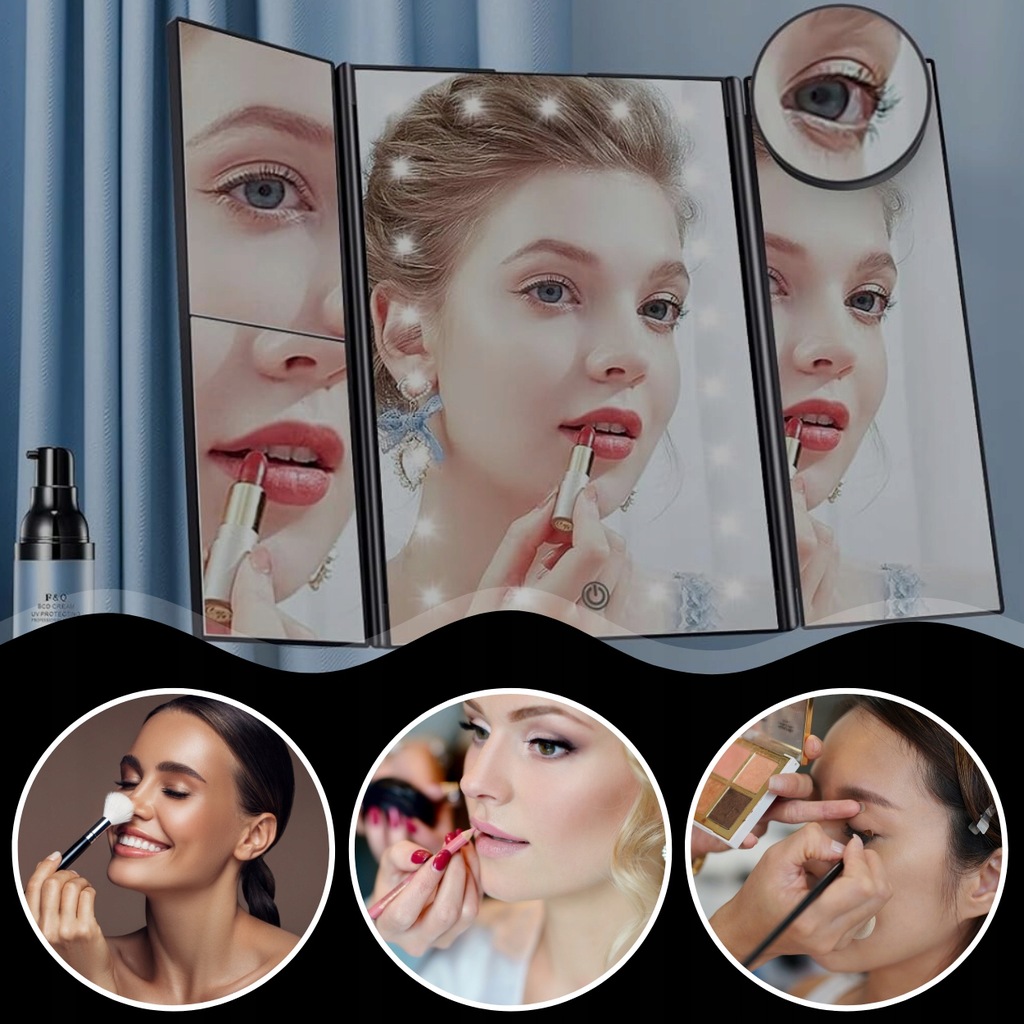 ➡️ Багатоступеневе ЗБІЛЬШЕННЯ – середнє дзеркало забезпечує природне зображення, бічні панелі пропонують збільшення x2 та x3, а додаткове дзеркало x10 дозволяє побачити навіть найдрібніші деталі під час укладки брів або макіяжу очей.