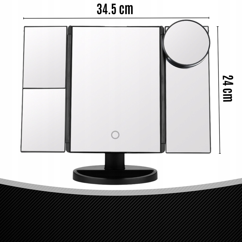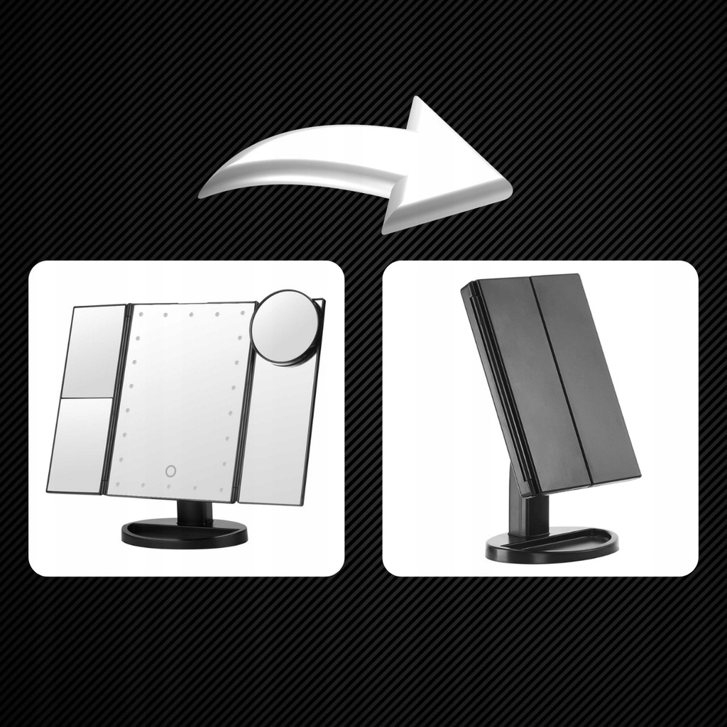 ДЗЕРКАЛО КОСМЕТИЧНЕ ДЛЯ МАКІЯЖУ З ПІДСВІЧУВАННЯМ, СКЛАДНЕ, ЗБІЛЬШУВАЛЬНЕ LED