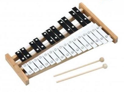 27-тональні хроматичні дзвіночки - дві повні октави з півтонами. Основа виготовлена з дерева, в комплект входять дві дерев'яні палички. Електронно налаштований. На табличках звукові написи.