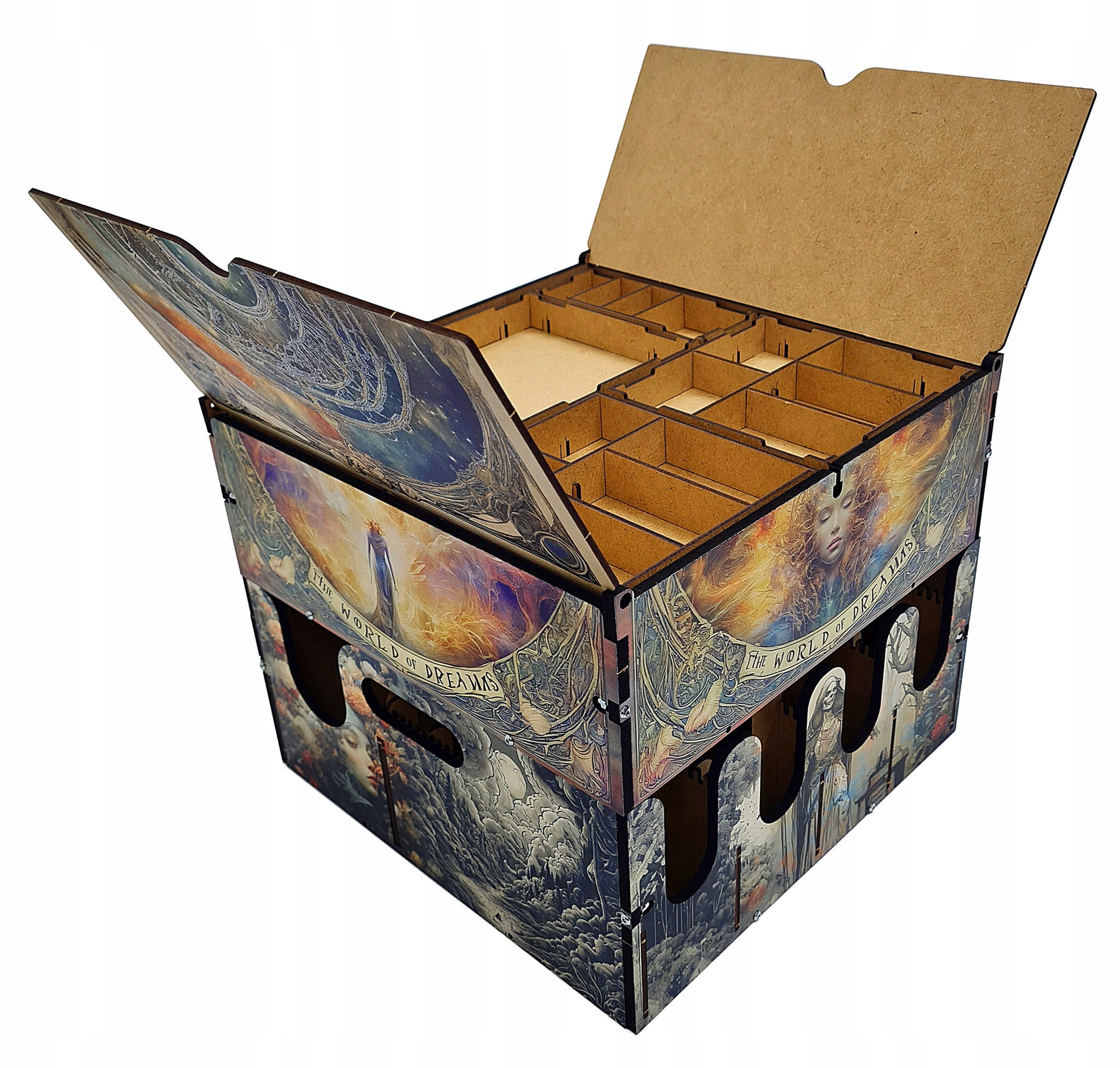 Вставка довговічна і виготовлена з високоякісної HDF. Коробка виготовлена з відмінної якості MDF. Установка не вимагає використання клею. Це дозволяє зберігати всі компоненти всередині коробки. Запропонована конфігурація компонентів можна побачити на малюнках. Вставка не містить фетру. Пропозиція стосується лише коробки. Гра не додається.